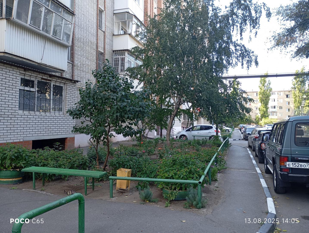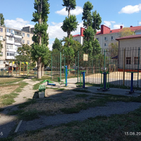 Во дворе автомобильная парковка, детская и спортивная площадки, тренажеры.