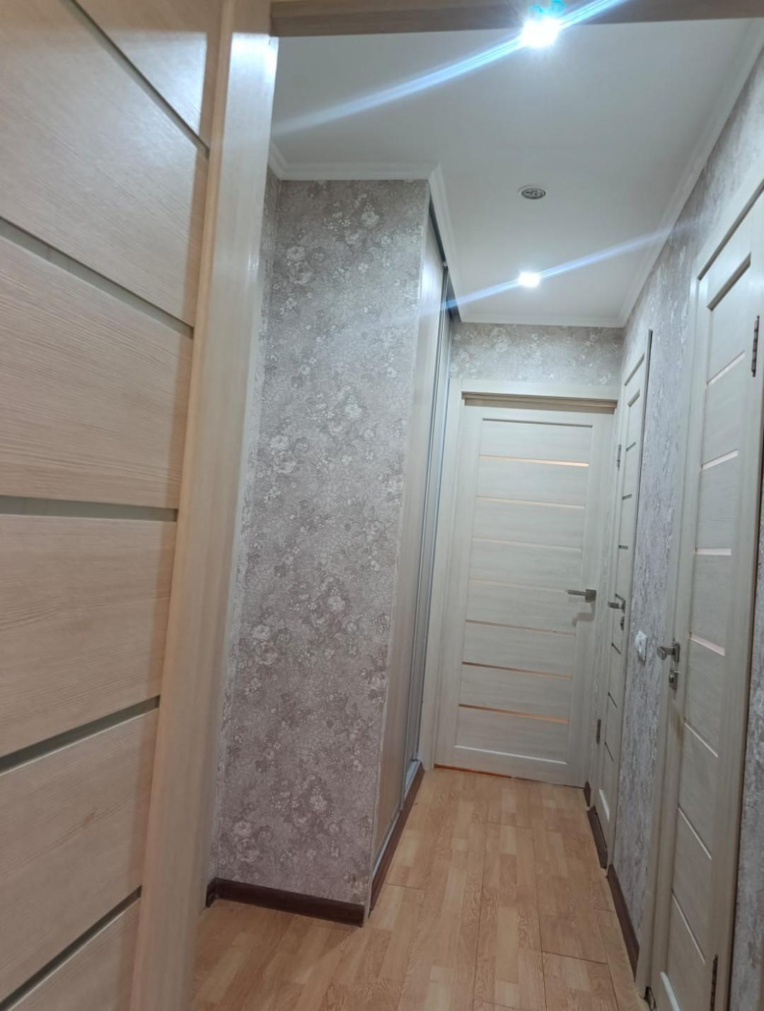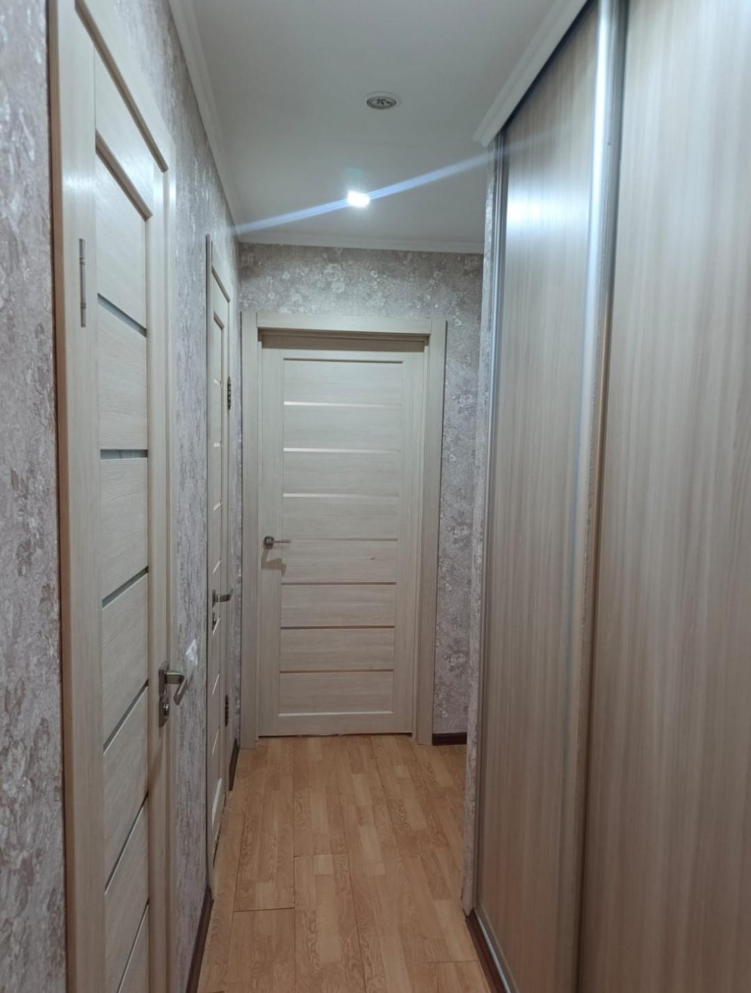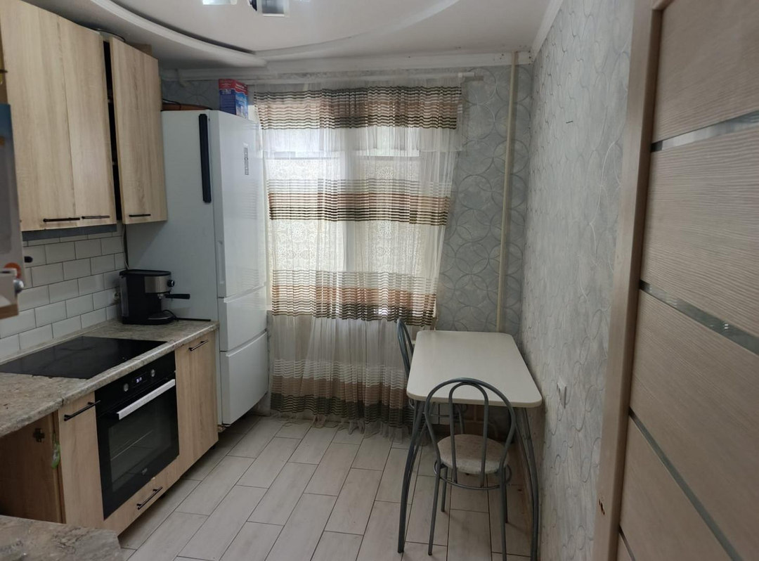 В квартире остаются три встроенных шкафа и кухонный гарнитур.