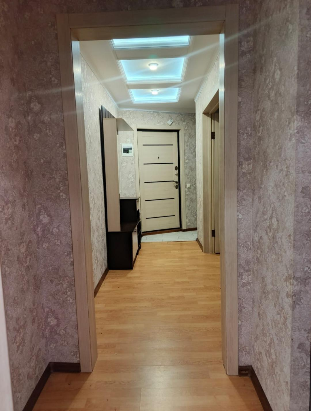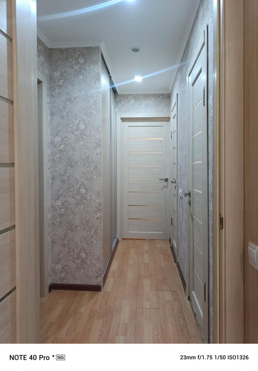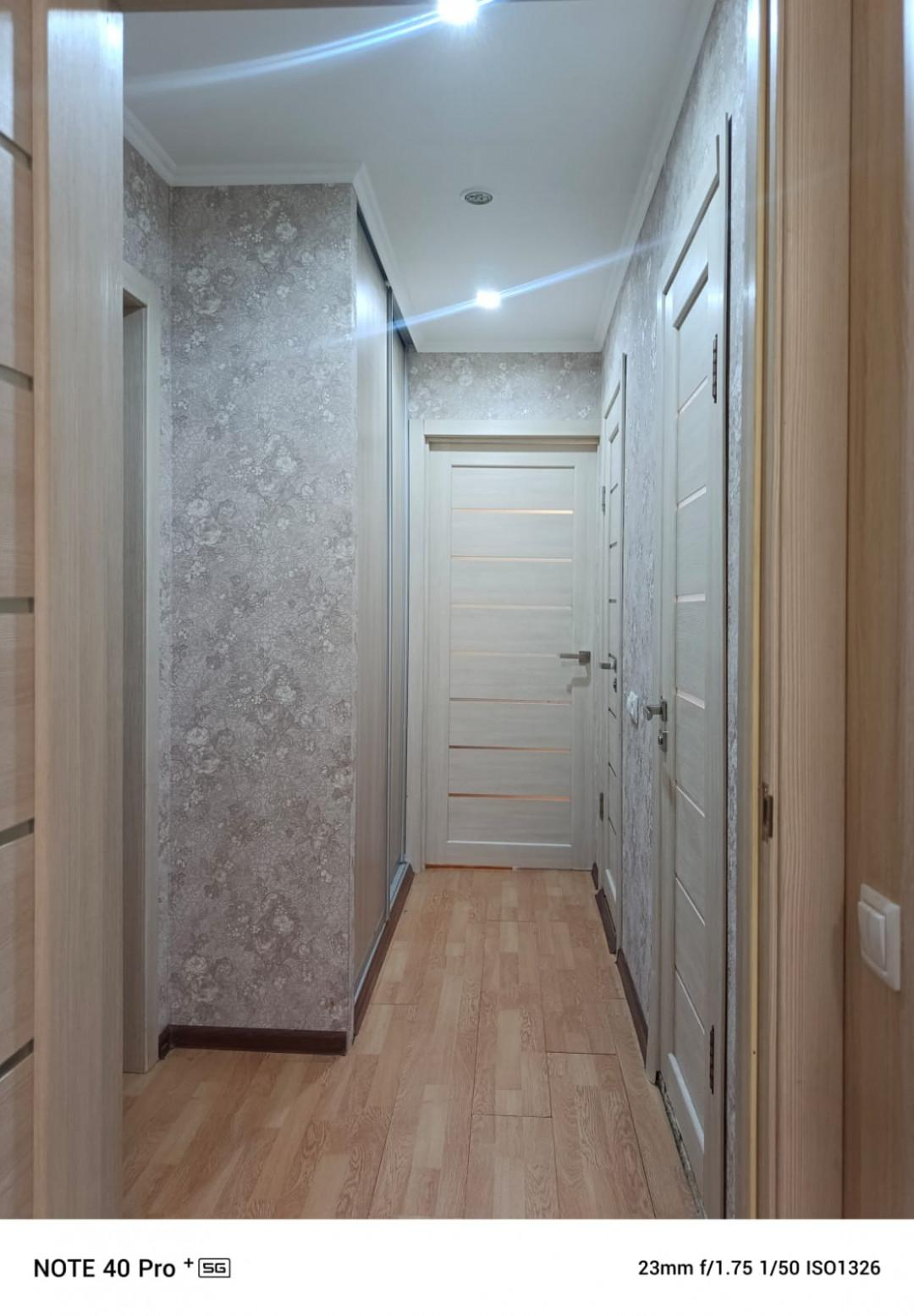 В квартире остаются три встроенных шкафа и кухонный гарнитур.
