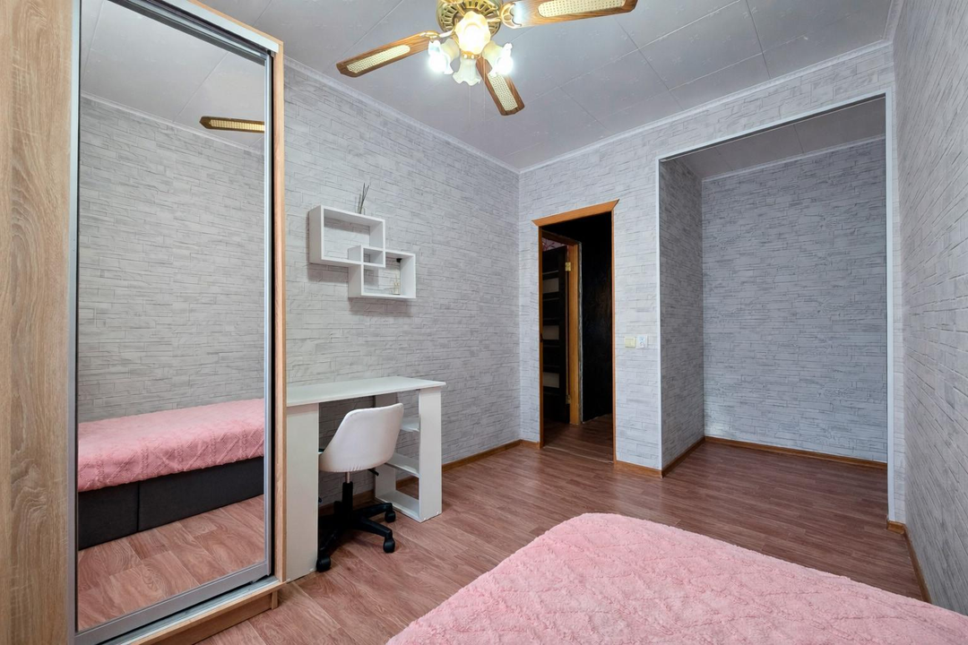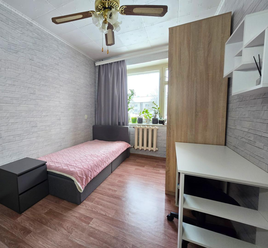 Отличная планировка: три просторные изолированные комнаты и большой балкон. Большие окна делают комнаты светлыми и воздушными. Зимой в квартире всегда комфортная температура — очень теплые стены и отличное отопление.