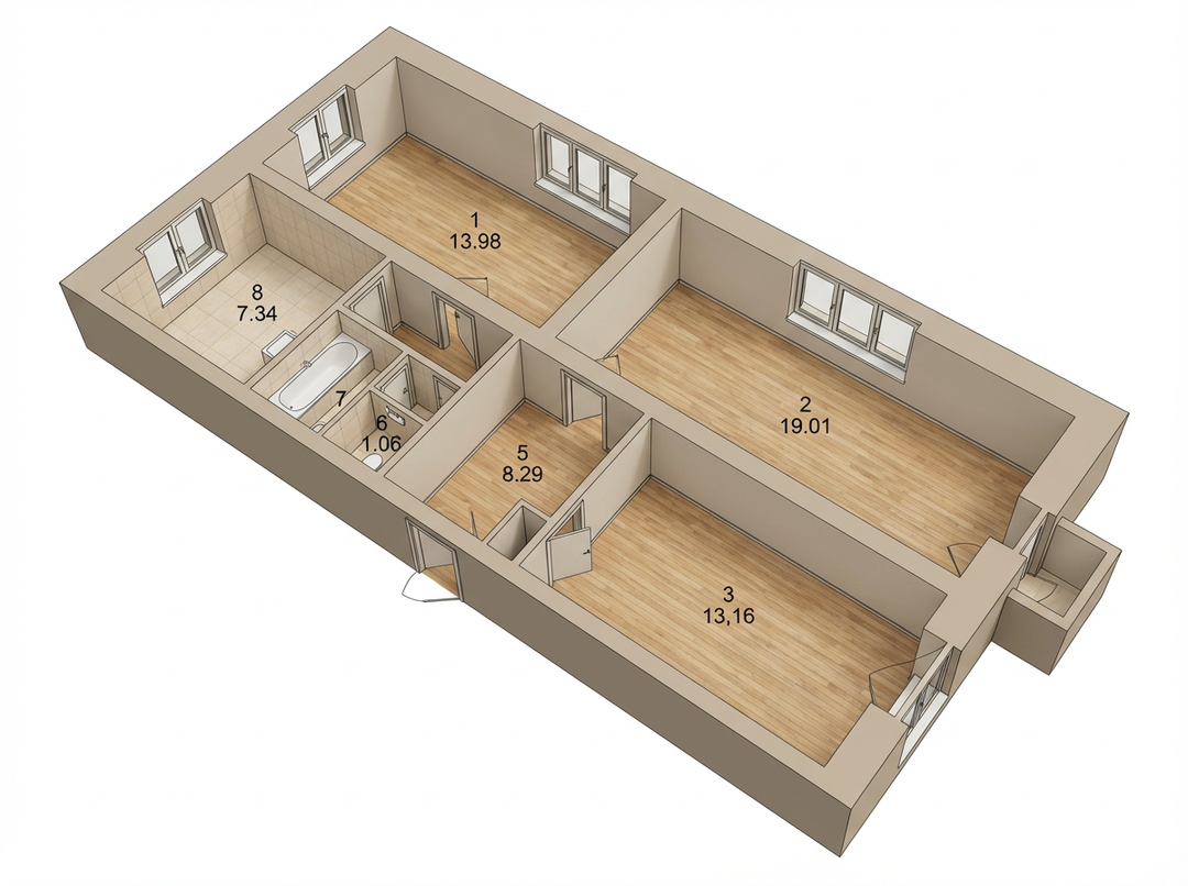 Квартира, куда вы можете сразу заехать и жить, расположена по адрecу: ул. Жуковского, д.51, общeй площaдью 65.4 кв.м.