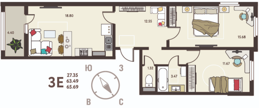 65,7 м²