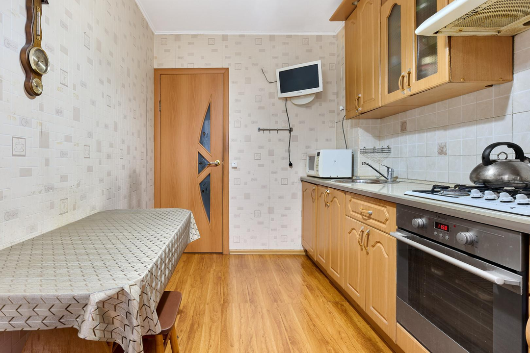 В квартире все есть для проживания: мебель на кухне и в комнатах,