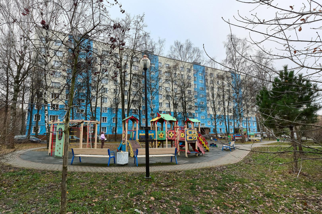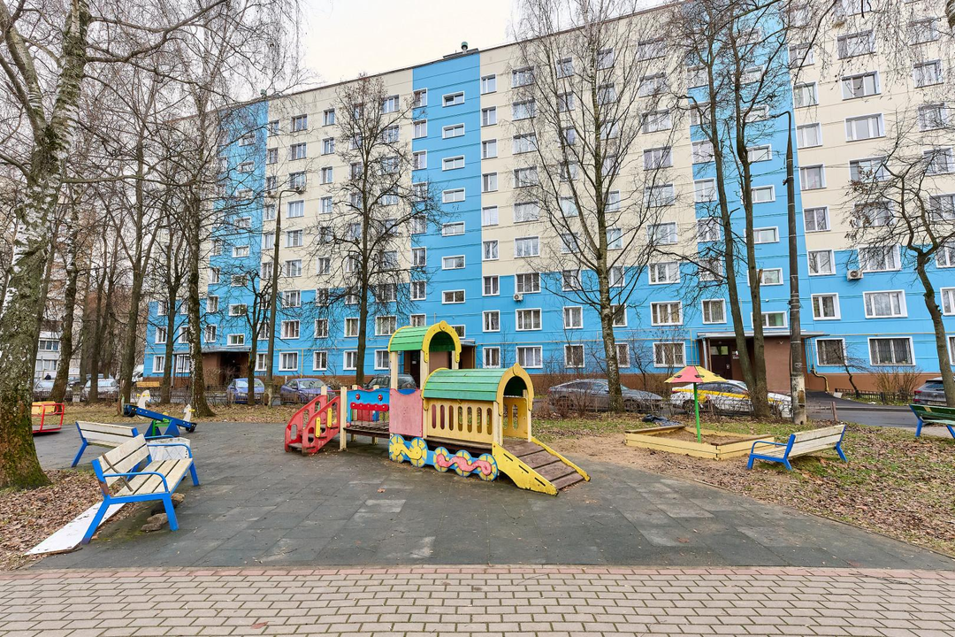 Во дворе дома находится детская площадка, за домом сквер.