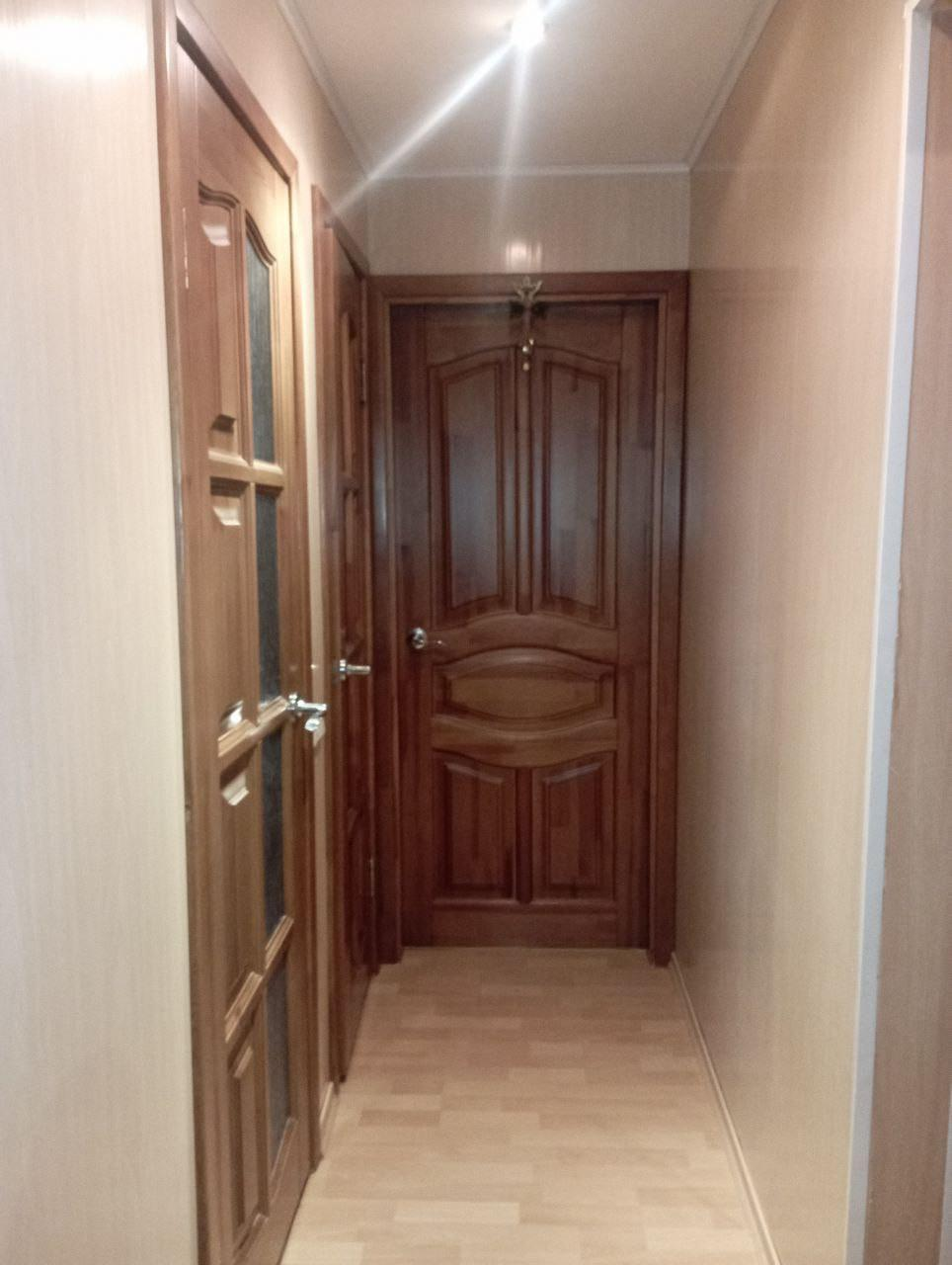 Планировка и отделка:3 изолированные комнаты.Санузел (ванная+туалет): полный кафель.Полы: кухня — кафель, комнаты — линолеум и ковровое покрытие.Окна: пластиковые стеклопакеты.Балкон: застеклен, отделан деревом.