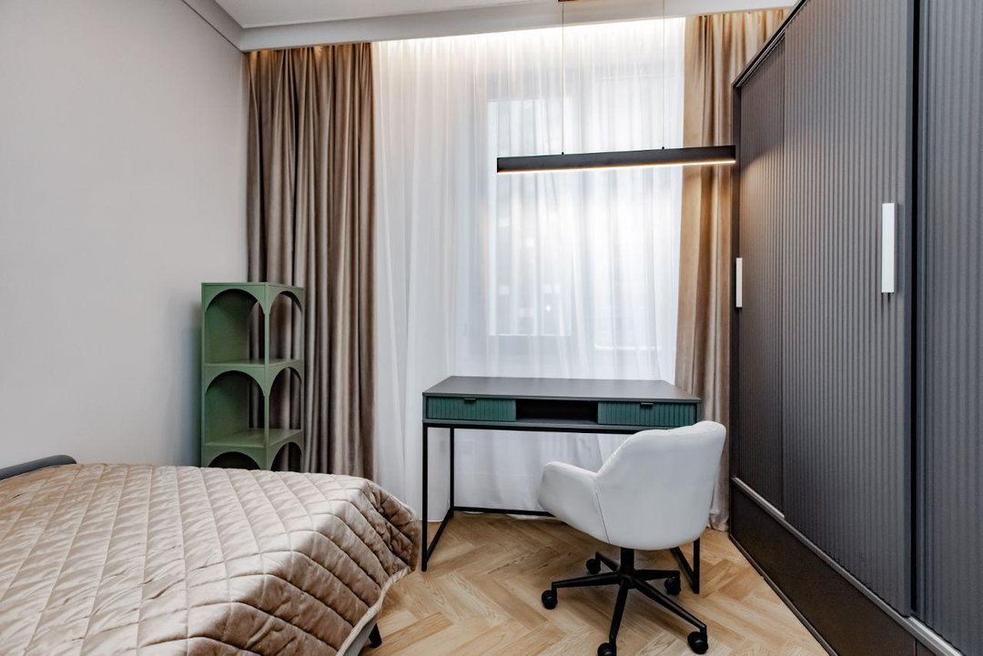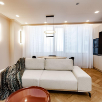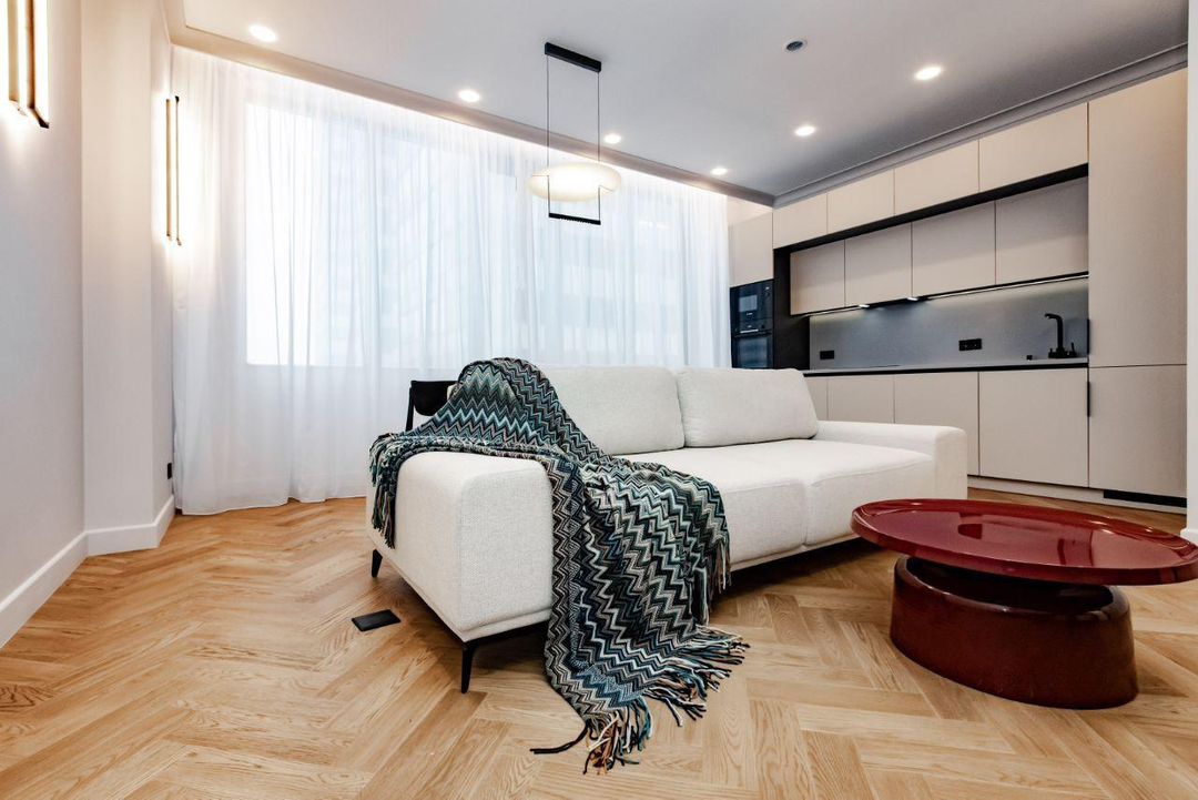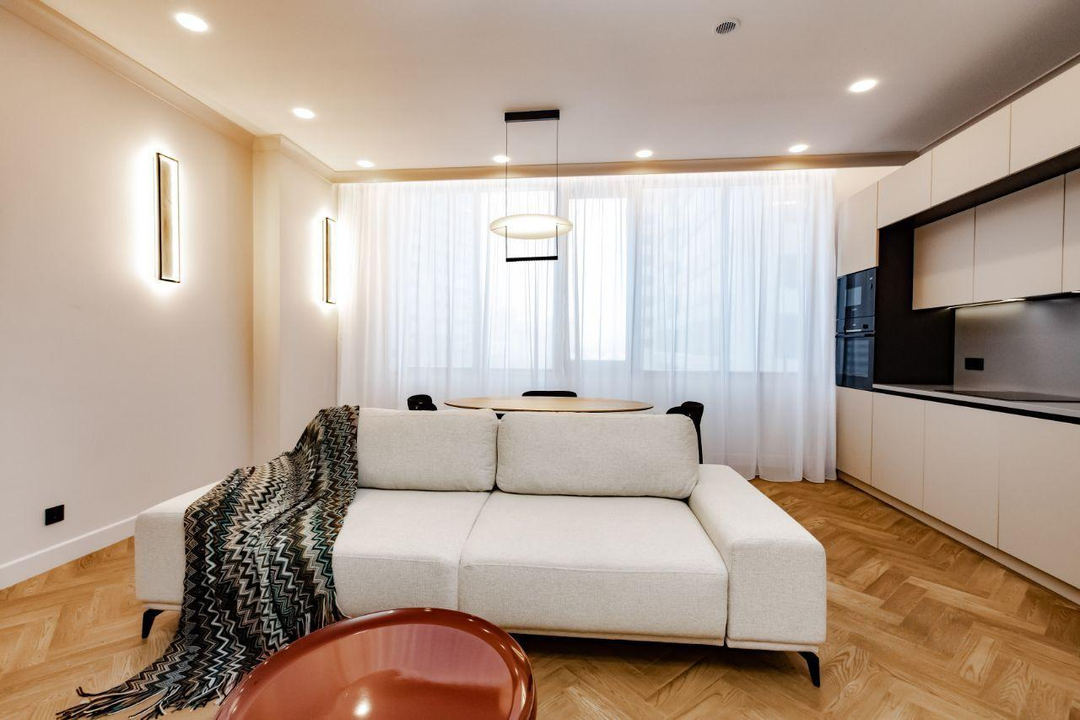 Преимущества:В квартире выполнен дизайнерский ремонт в современном стилеШирокоформатные окна с видом на зеленый променадШумоизоляция по полуДубовый паркетПодоконники и столешница из камняВанная из искусственного камняСистема управления светомНовая мебель и качественная техника Подземная парковка