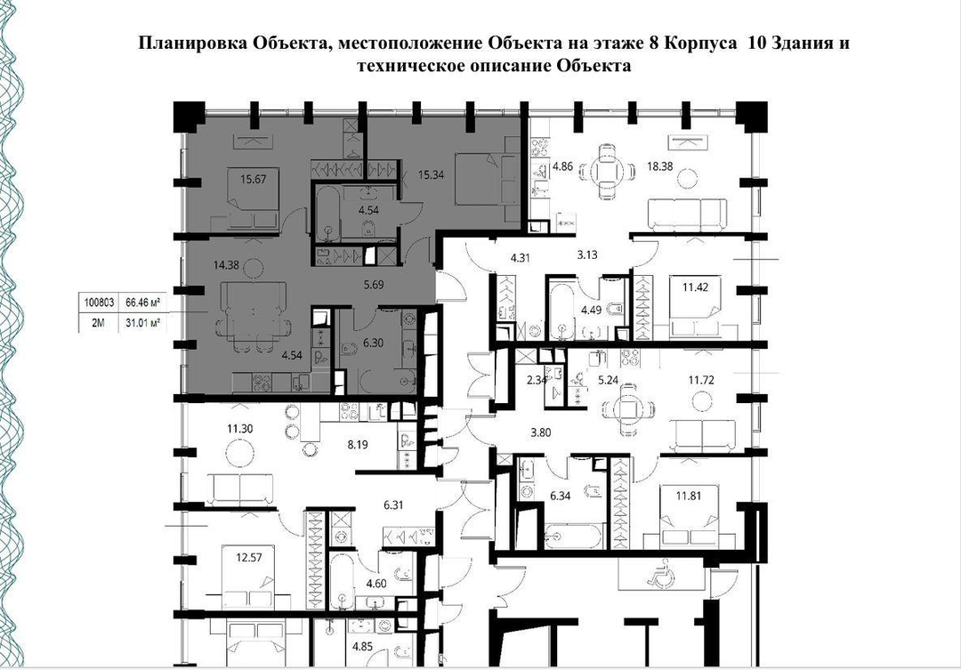 Ваша 3-комнатная квартира площадью 66,46 м² на 8 этаже ждет вас!
