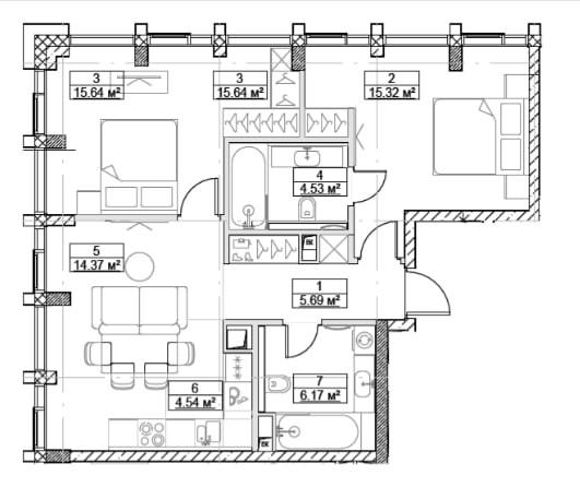 Высота потолков 3 метра создает ощущение невероятного простора и свободы. Квартиры сдаются с подчистовой отделкой, позволяя вам воплотить любые дизайнерские фантазии.