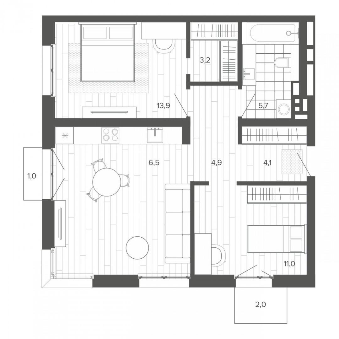 • Общая площадь 66,6 м²