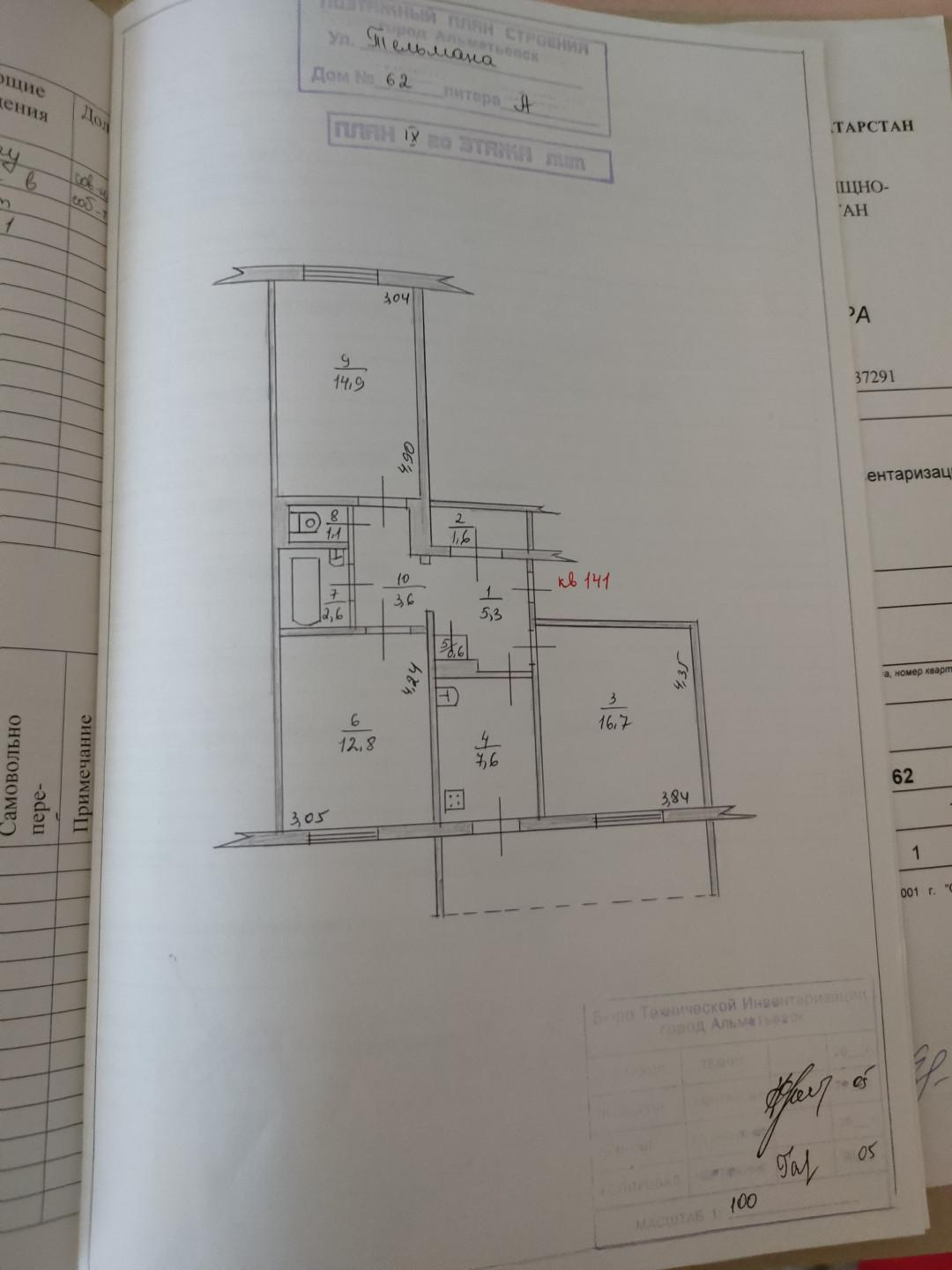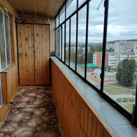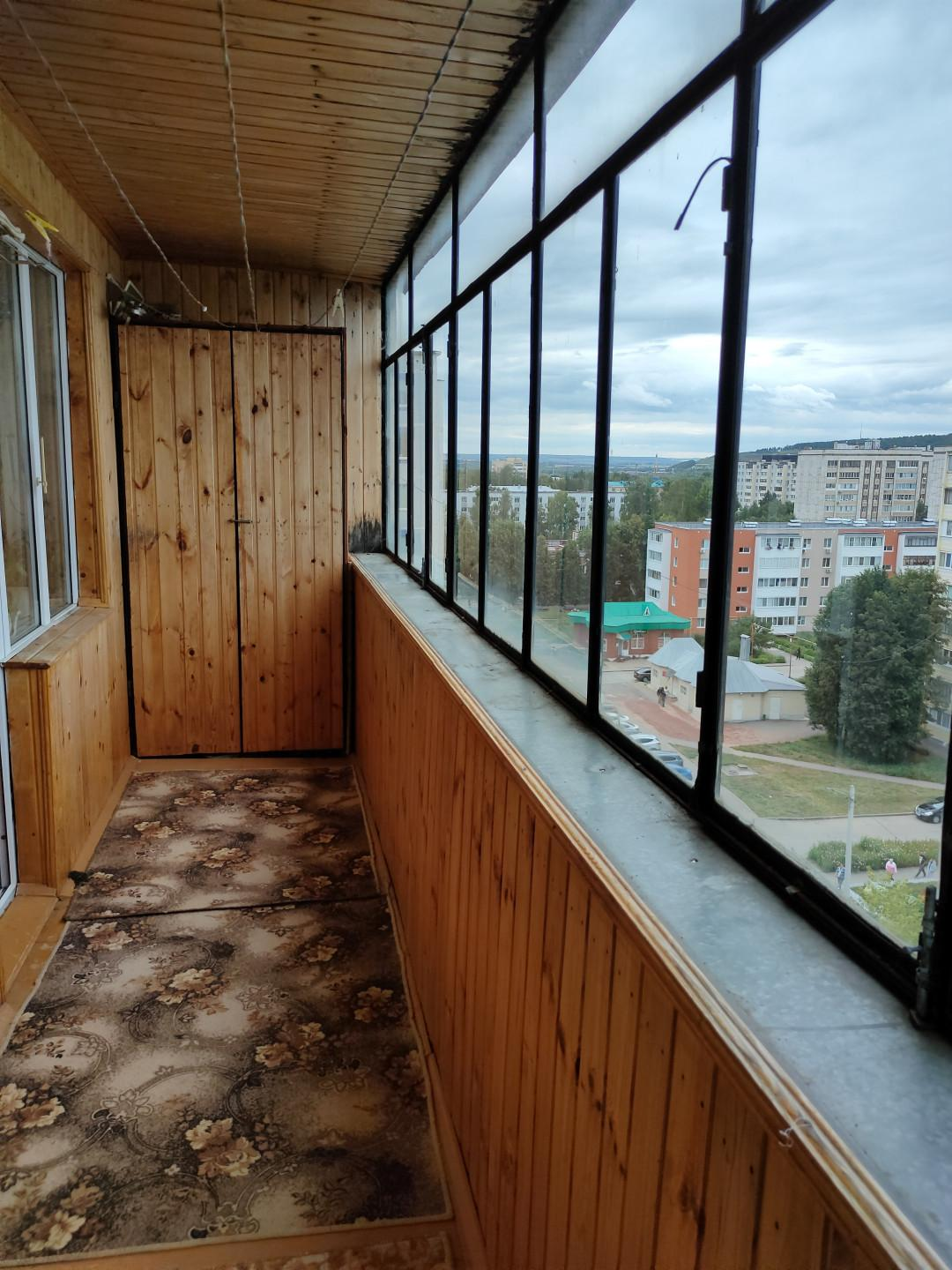 Расположена на девятом этаже девятиэтажного панельного дома, есть технический этаж. Лоджия застеклена и обшита вагонкой с местом для хранения для вещей.