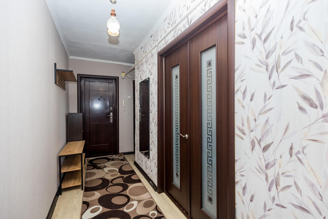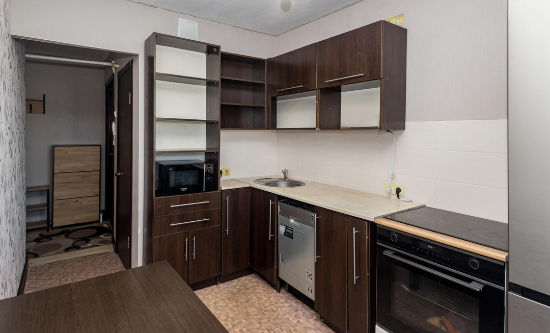 — В квартире остаётся всё необходимое для комфортного проживания: кухонный гарнитур с обеденной зоной, диван и шкаф-стенка в гостиной, кровать и вместительный шкаф-купе в спальне, а в прихожей — удобная обувница.
