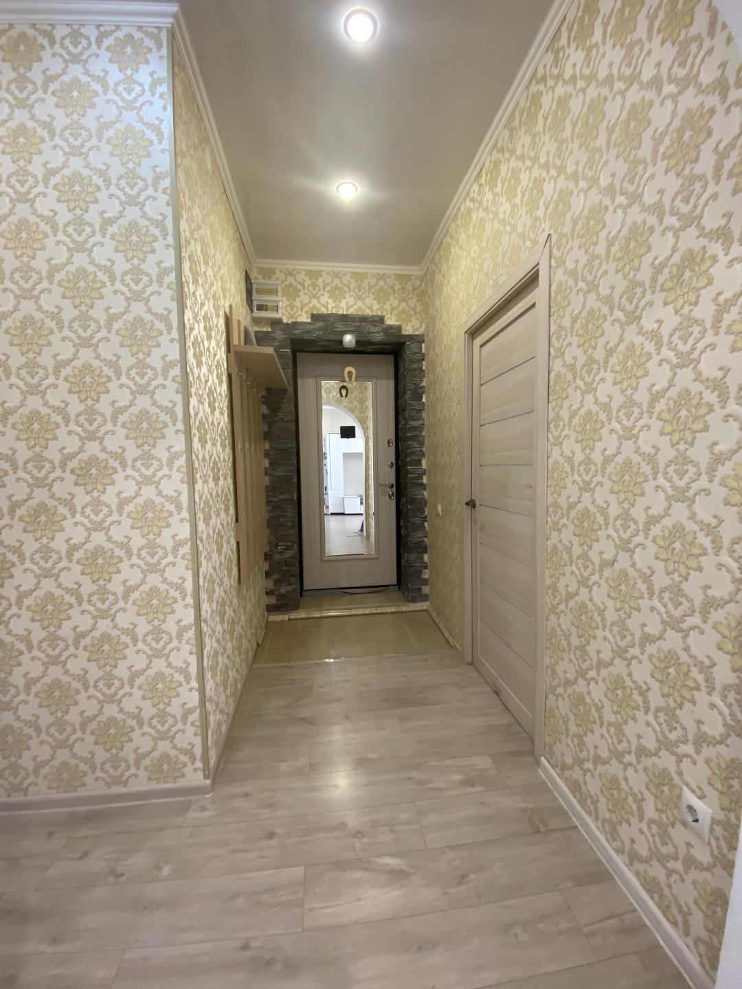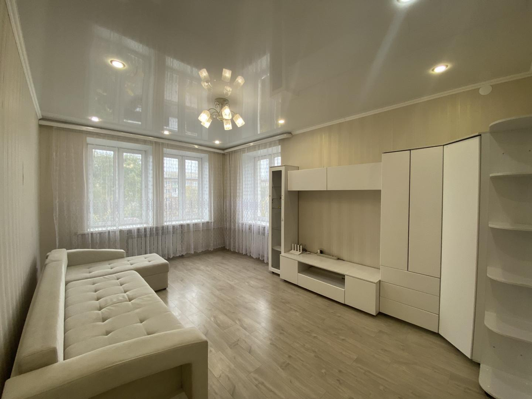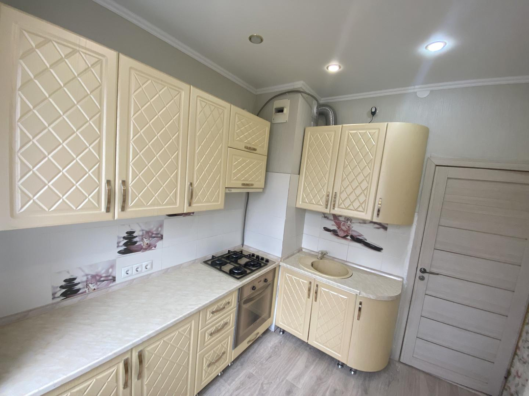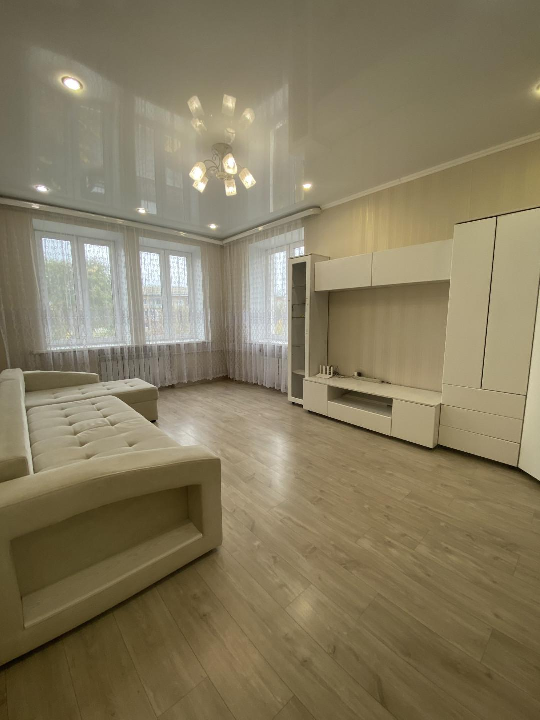 Окна ПВХ, натяжные потолки, на полу качественный ламинат, новые межкомнатные двери, сантехника почти новая.