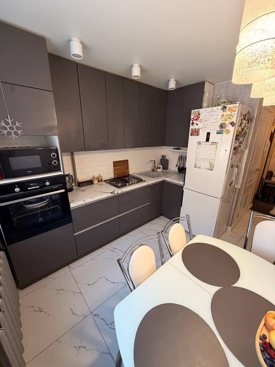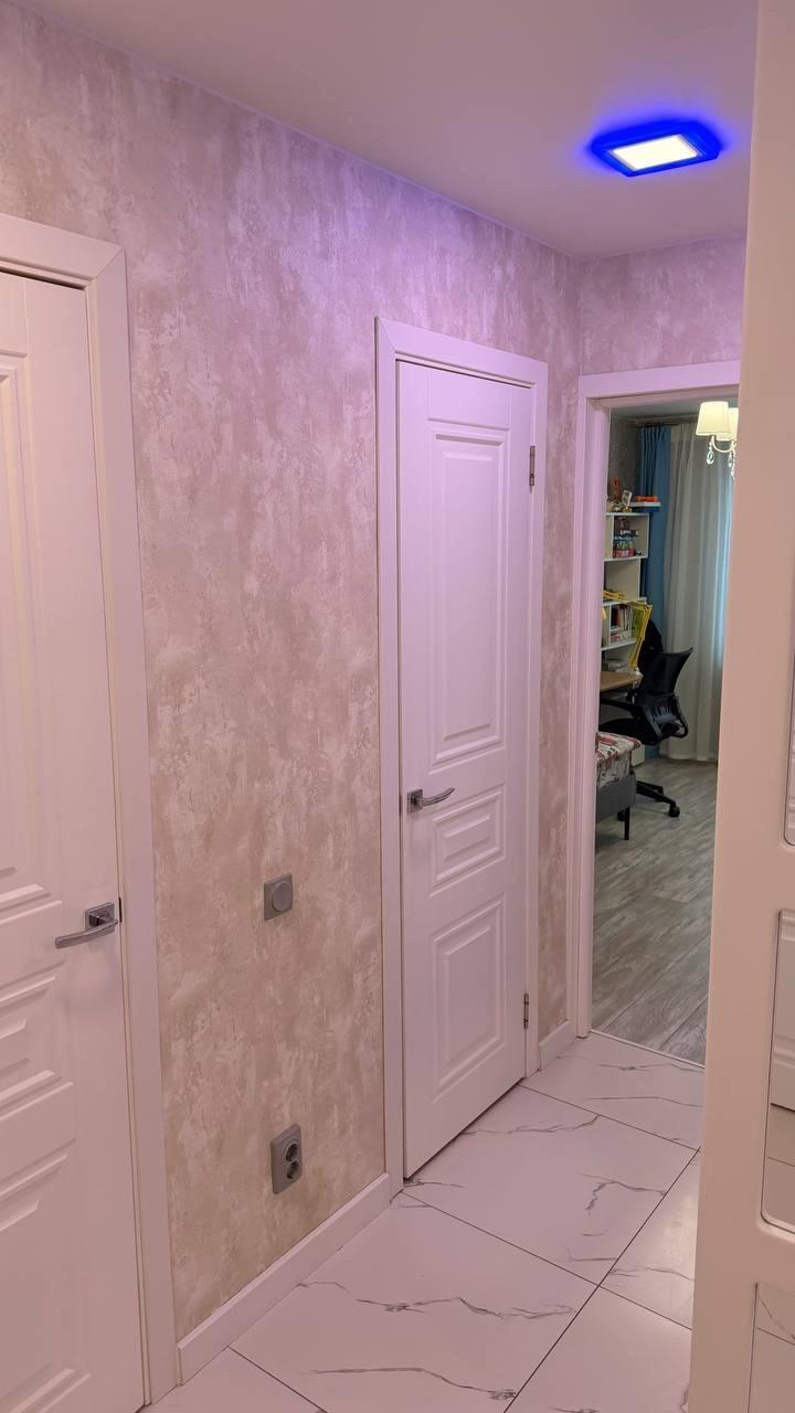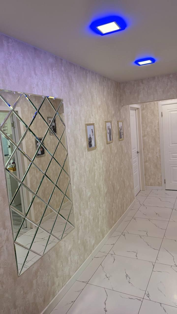 В кухне располагается стильный кухонный гарнитур с дорогостоящей встроенной техникой. Шикарный, просторный светлый коридор, с зеркалом и качественными межкомнатными дверьми. Во всех комнатах выполнен хороший ремонт в белых тонах. Большие окна. Много света. Имеется кондиционер. Санузел раздельный в кафеле. Мебель остаётся по согласованию.