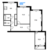 Компания «Самолёт Плюс» предлагает уютную 3-комнатную квартиру классической планировки общей площадью 67,3 м².