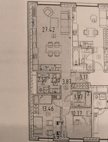 комнаты 1 – 22,42 кв.м