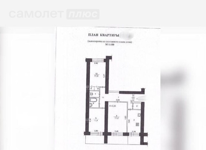 Комната 1 - 17,2, комната 2 - 11,9, комната 3 - 11,4.