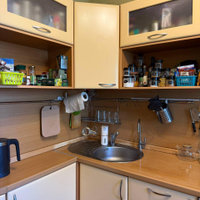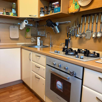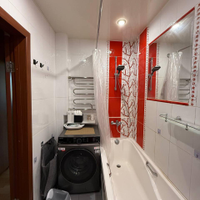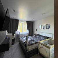 - Современный ремонт: В двух комнатах выполнен высококачественный ремонт: установлены натяжные потолки, уложено новое напольное покрытие, поклеены свежие обои. Санузел облицован качественной плиткой.