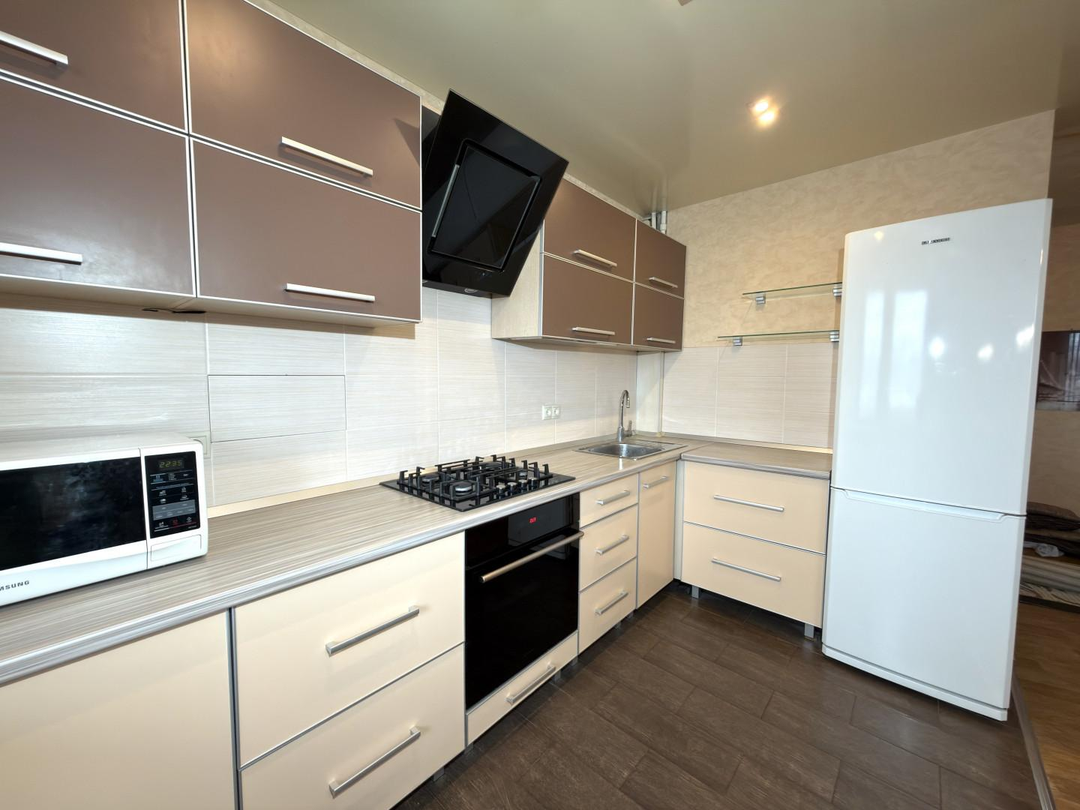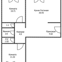 Кухня объединена с гостиной и составляет площадь более 30м2 (перепланировка узаконена)