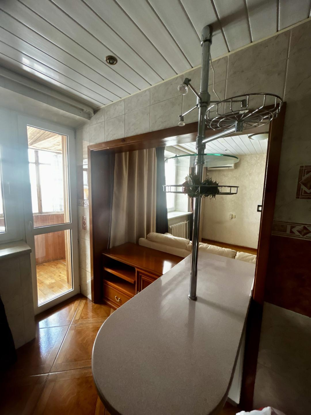 Кухня — функциональная, с удобной рабочей зоной и выходом на лоджию.