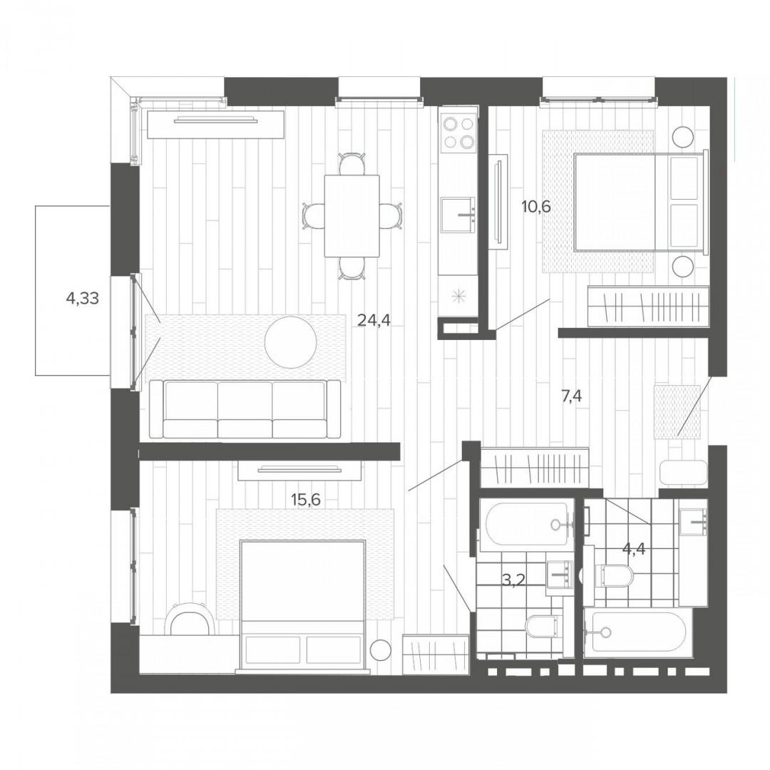Продается квартира в новом ЖК комфорт-класса «Вышка». Сдача дома - 2 квартал 2026 года!