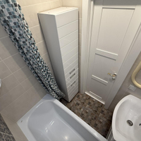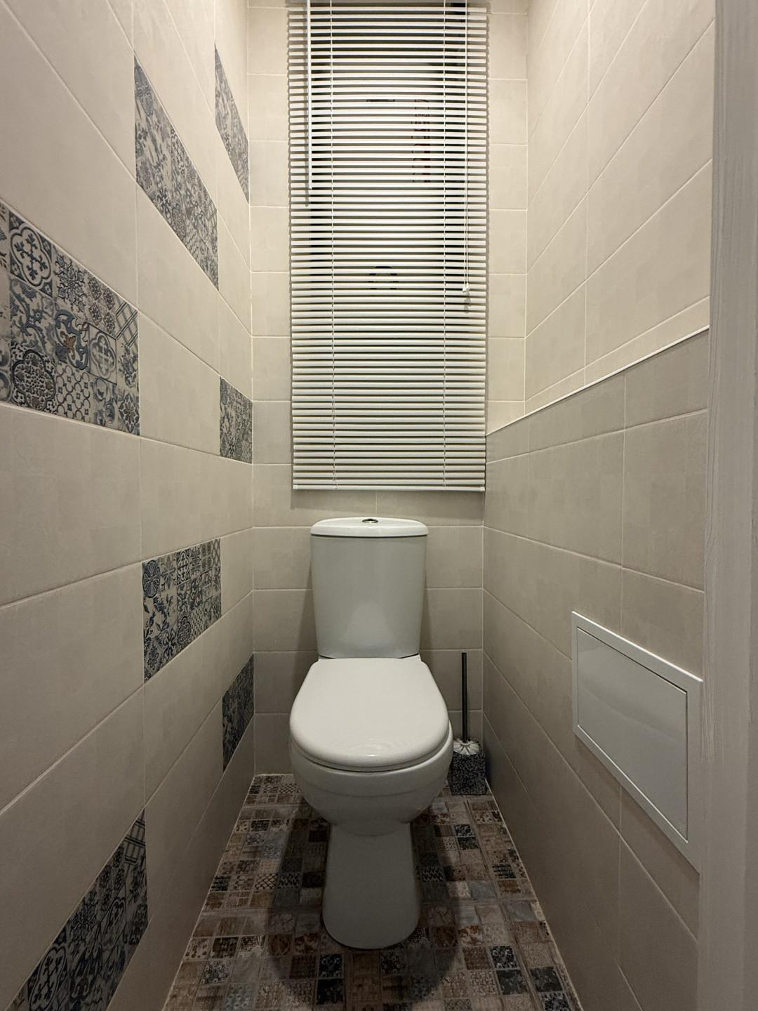 В раздельном санузле останется сантехническое оборудование, мебельный пенал для удобства хранения, водонагреватель.