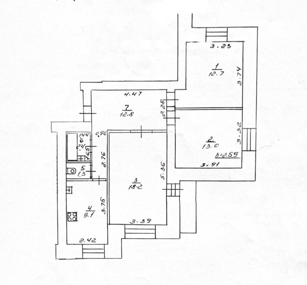 Квартира имеет 3 изолированные комнаты: 12,7 кв.м, 13 кв.м, 18,2 кв.м , что с комфортом позволит разместиться большой семье и организовать пространство.