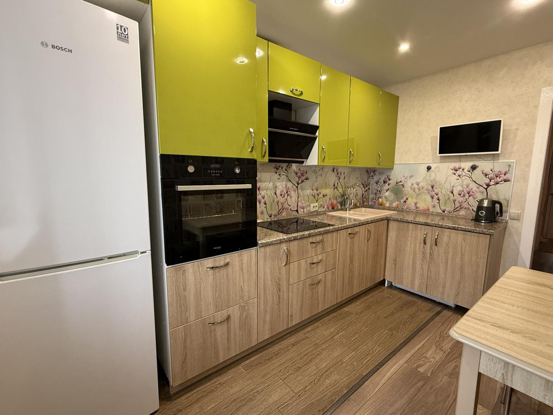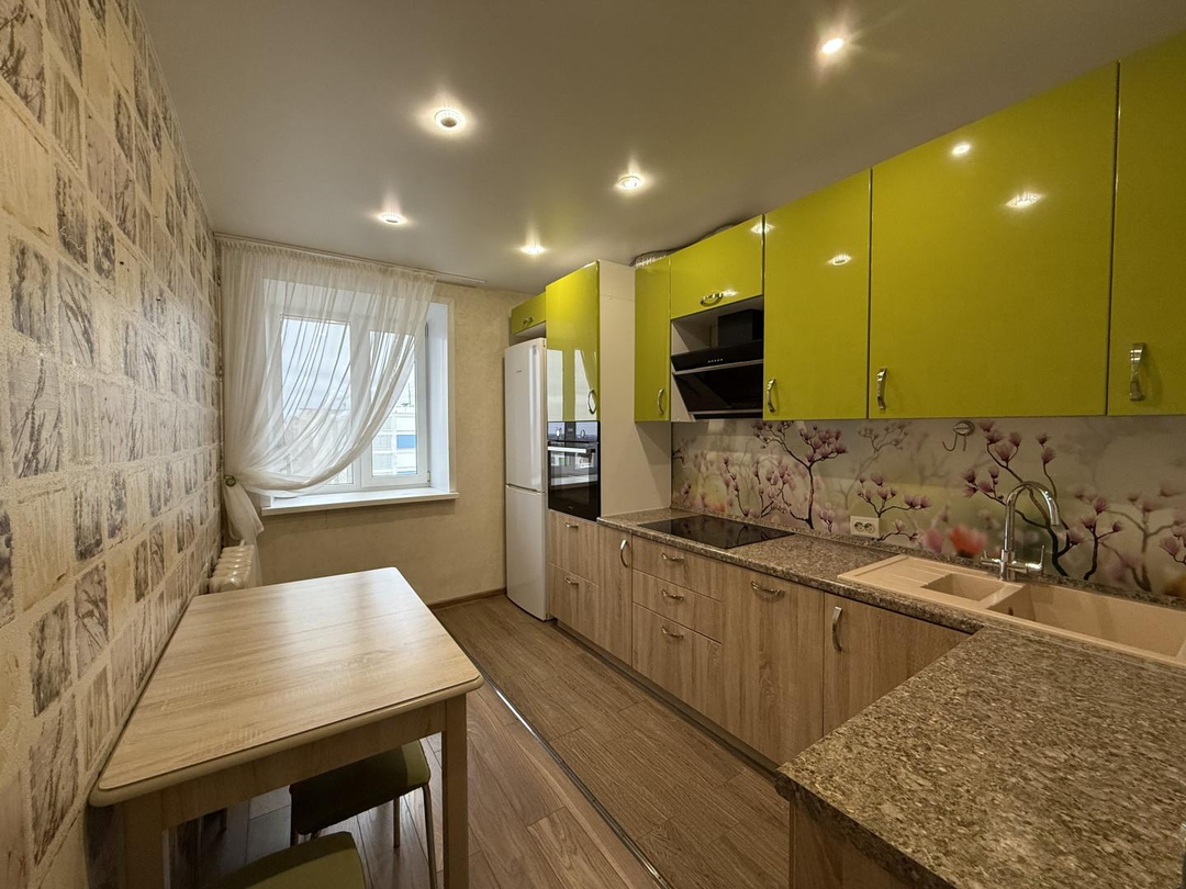 Достаточно просторная кухня в 9,1 кв.м оборудована удобным кухонным гарнитуром со встроенными варочной поверхностью, духовым шкафом, вытяжкой, посудомоечной машиной, фильтром воды, для Покупателя также останутся холодильник и стиральная машина.