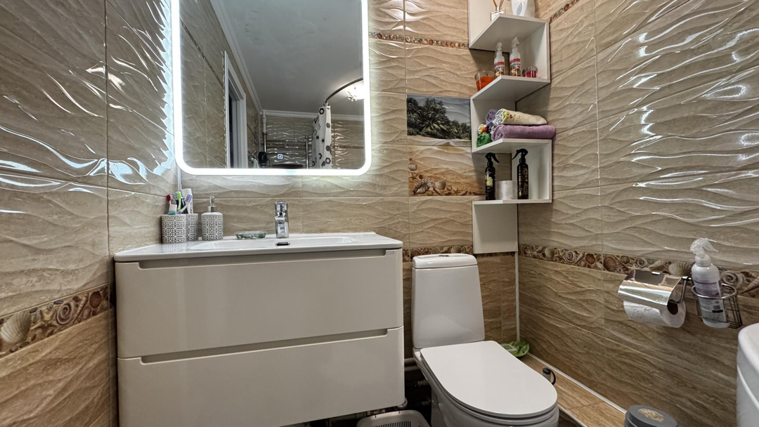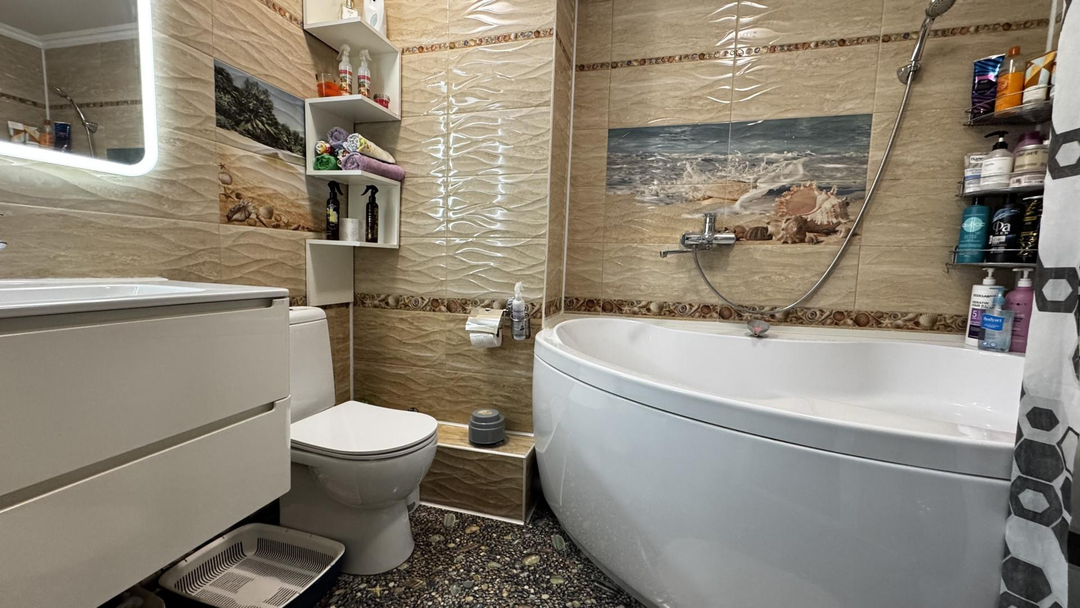 Уютная, теплая, светлая с отличной планировкой на обе стороны. В квартире продумано все, большая гостиная с комфортным диваном и телевизионной зоной. Уютная кухня со встроенным гарнитуром, где можно собираться всей семьей за вкусным обедом или романтическим ужином. Две уютные спальни. площадь квартиры 70.2м2косметический ремонтсанузел совмещен, выложен кафелем и теплым полом. встроенный кухонный гарнитурбалкон остеклен и обшит, имеются место для хранения.комнаты изолированы, вид на обе стороны, с одной стороны видны горы, с другой город.