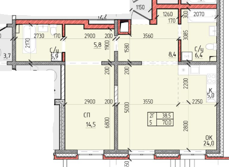 70 м²