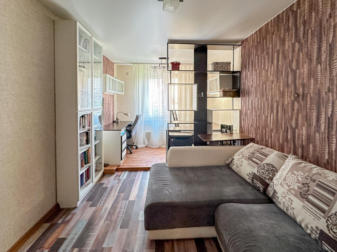 Чистый подъезд, хорошие соседи. Квартира имеет планировку распашонки. Из окон открывается живописный вид на озелененный двор и тихий частный сектор. Во дворе оборудована детская площадка, посажены клумбы, растут кустарники и деревья, есть парковочные места.
