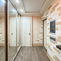- поклеены современные обои, на полу ламинат и керамогранит,