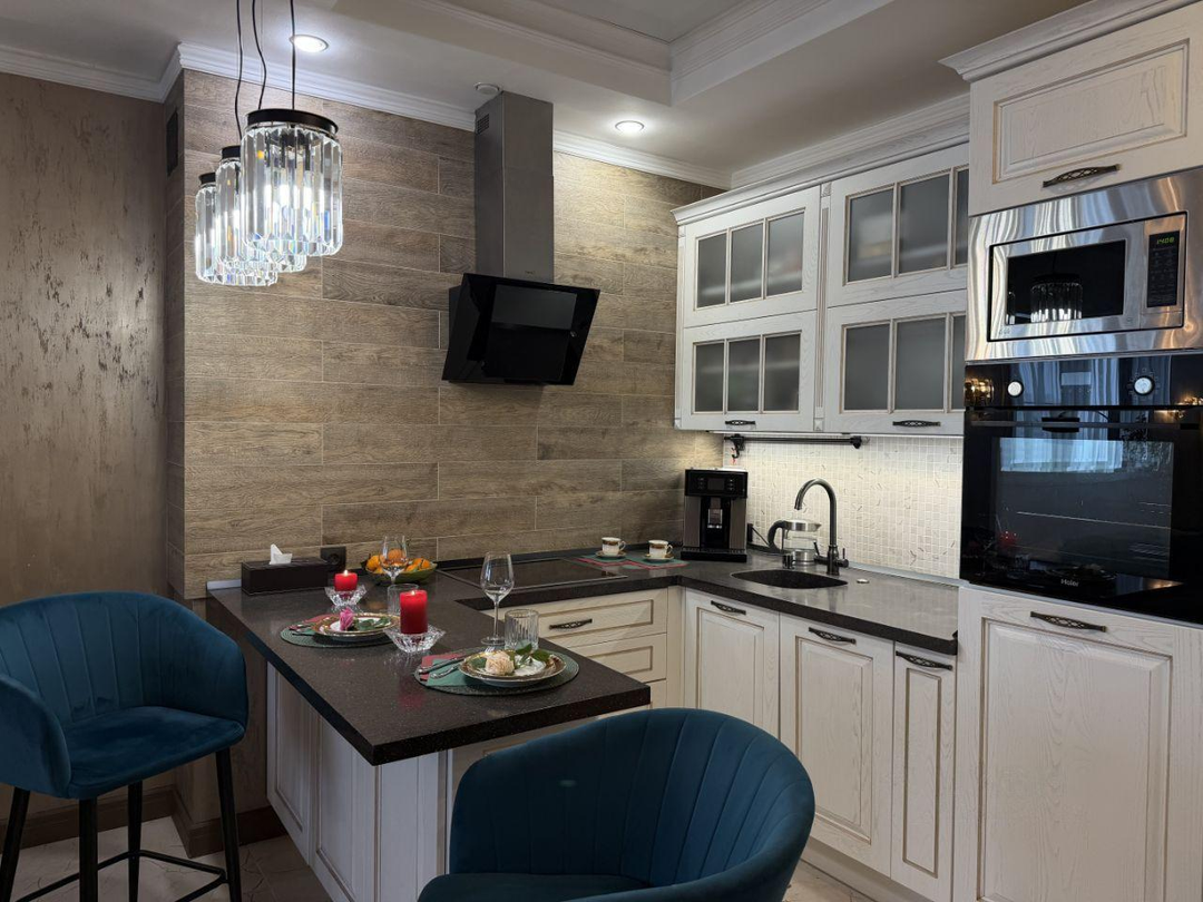 - Объединенная кухня-гостиная для семейных ужинов и приемов гостей.