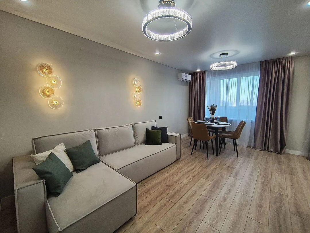 В квартире выполнен капитальный высококачественный дизайнерский ремонт с заменой всего, никто не жил.