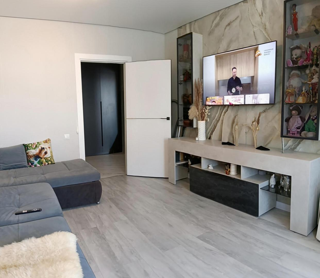 · Просторная гостиная: Сердце квартиры. Зона для семейных вечеров и встреч с друзьями. Продуманная система хранения скрывает всё лишнее, оставляя только красоту.