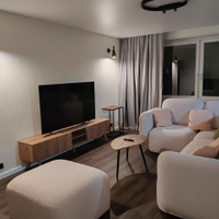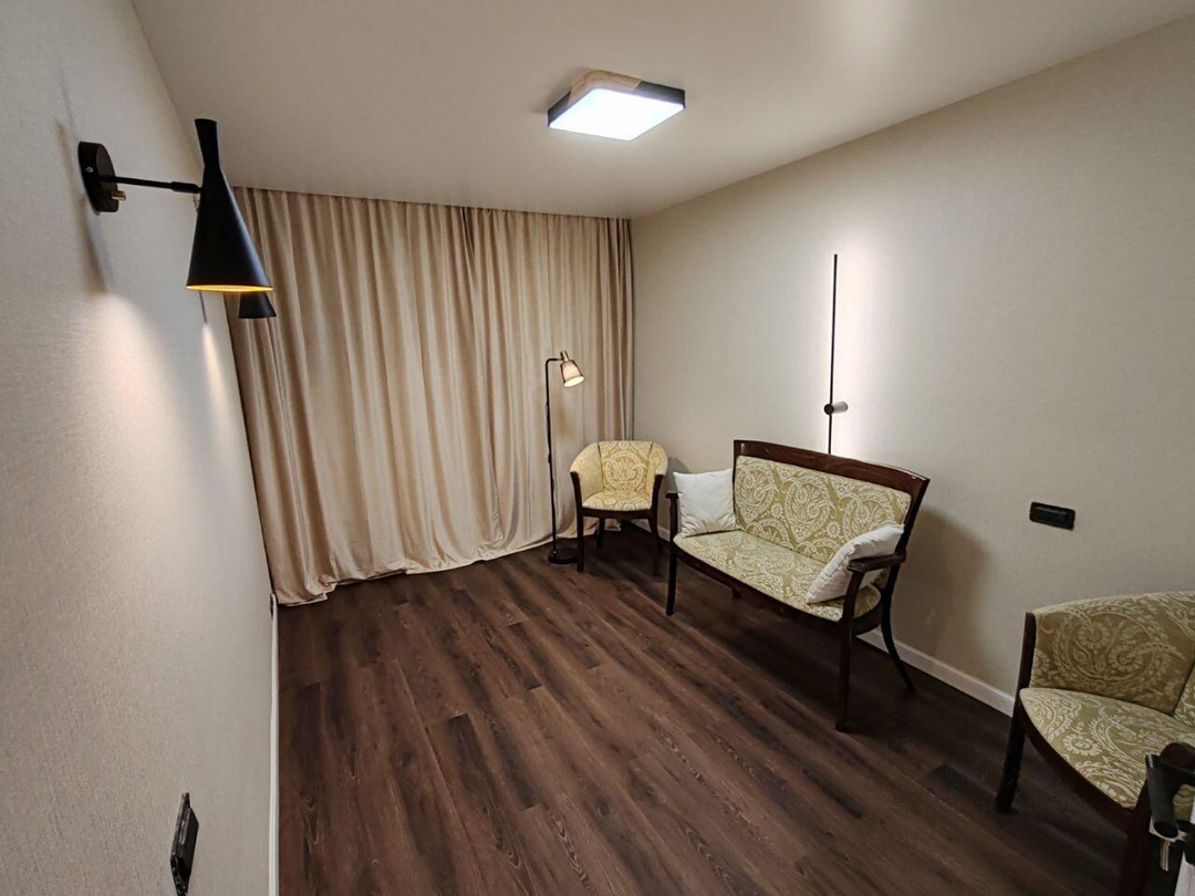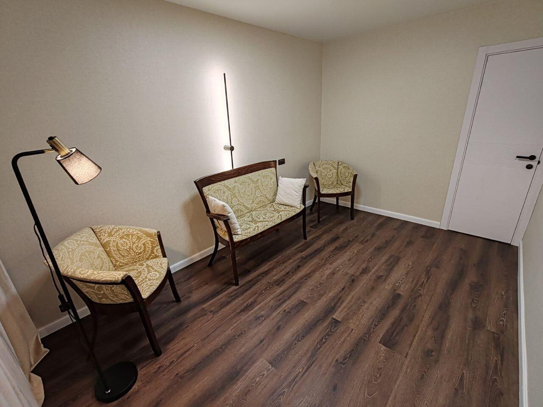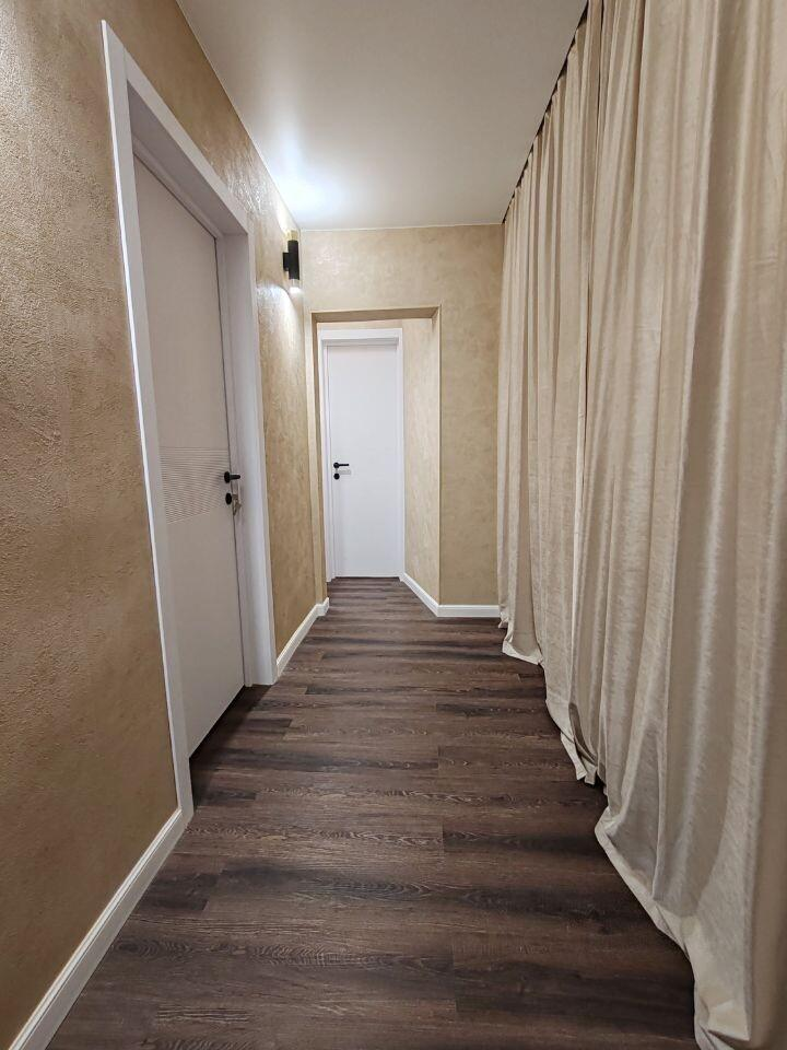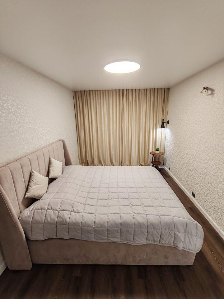 Квартира укомплектована премиальной мебелью, включая комфортабельную кровать с ортопедическим матрасом, и новым телевизором Grundig 65" (на гарантии). Интерьер подчеркивают эксклюзивные итальянские обои, а новые межкомнатные двери с покрытием silk добавляют утонченности. Мы позаботились и о ваших четвероногих друзьях, установив шторы "антикоготь".