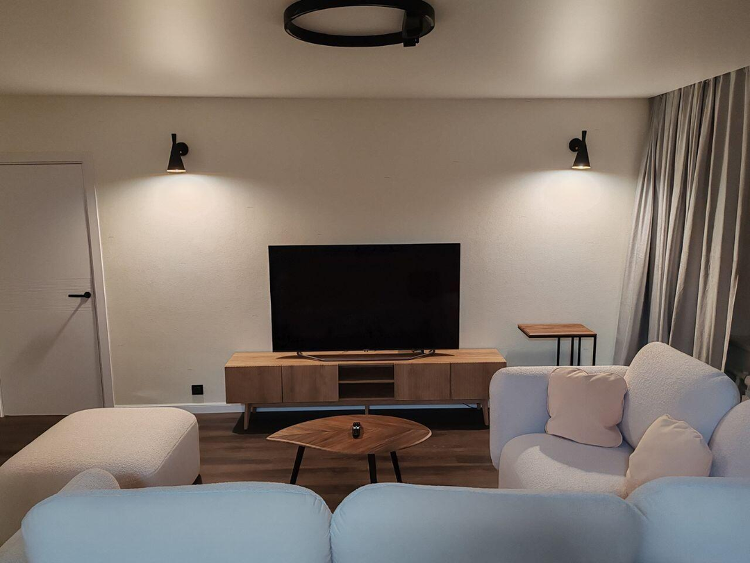 Внутри вас ждет полностью обновленный интерьер с новой электропроводкой и износостойким кварцвиниловым ламинатом. Для вашего комфорта установлены электрические теплые полы в ванной, на лоджиях и кухне. Создавайте идеальное настроение с помощью дизайнерских светильников с регулировкой яркости и температуры света, проходных выключателей и множества сценариев освещения.