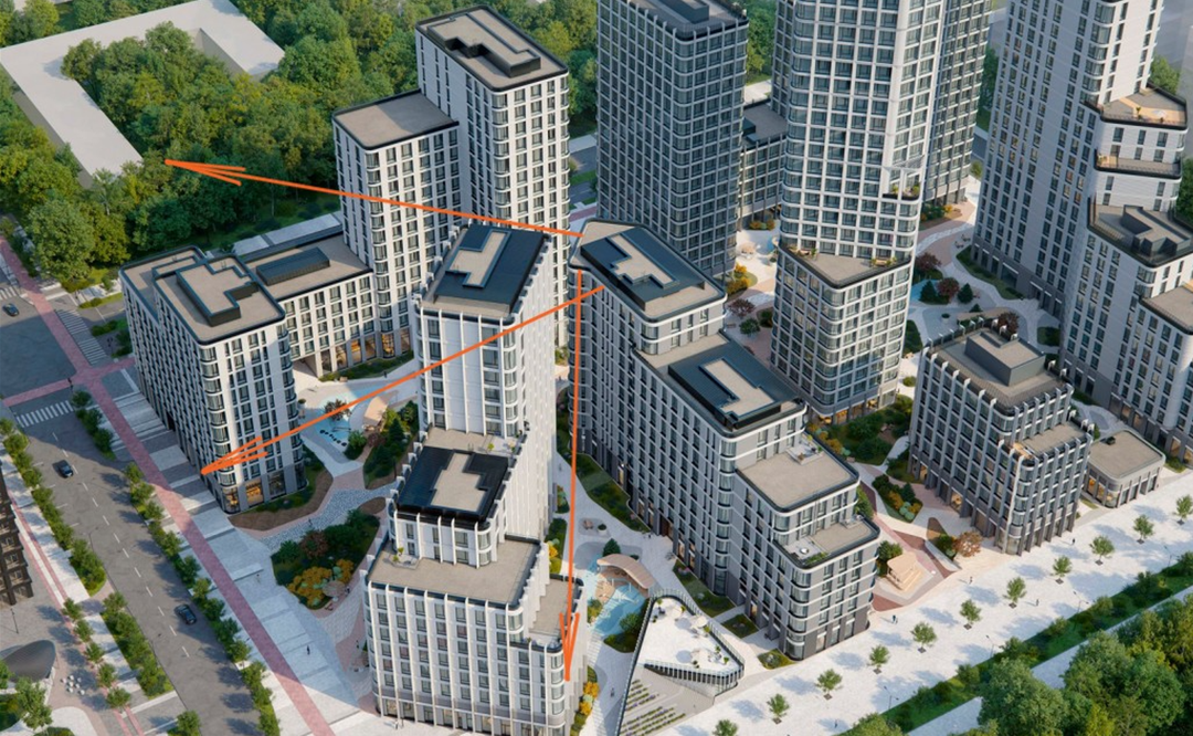 - Архитектурное разнообразие. От таунхаусов до 28-этажных башен