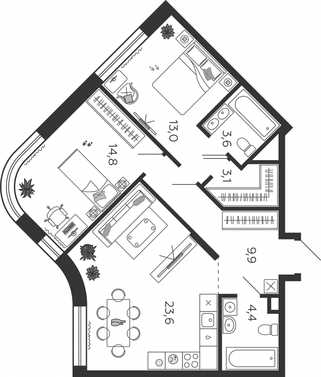 * Спальня – 14,80 м2