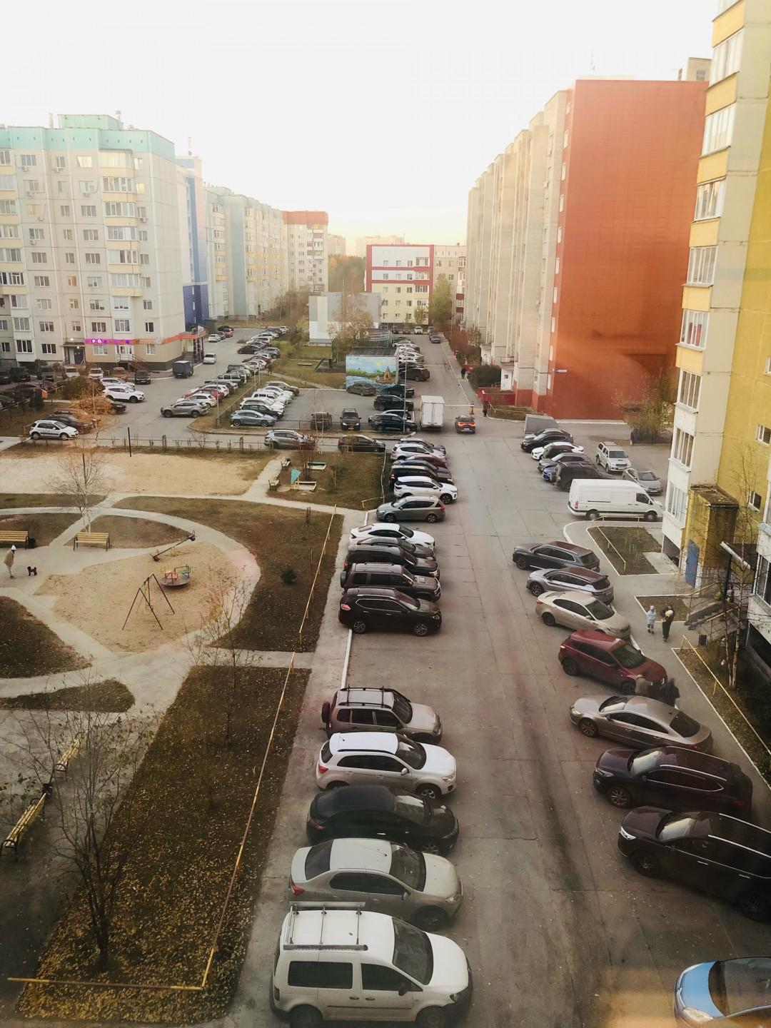 Большая детская игровая площадка во дворе. Всегда достаточное количество свободных мест для парковки.