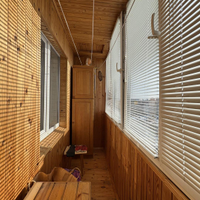 •Длинный балкон, отделанный деревом (вагонкой) — комфортное место для отдыха круглый год.