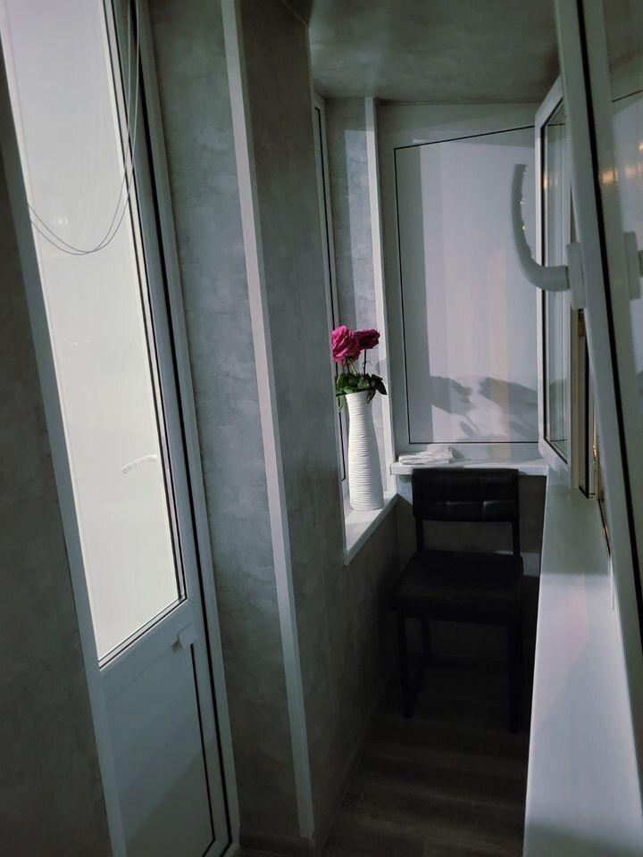 Балкон: застекленный (тройные стеклопакеты, обшитые и выровненные стены и пол).
