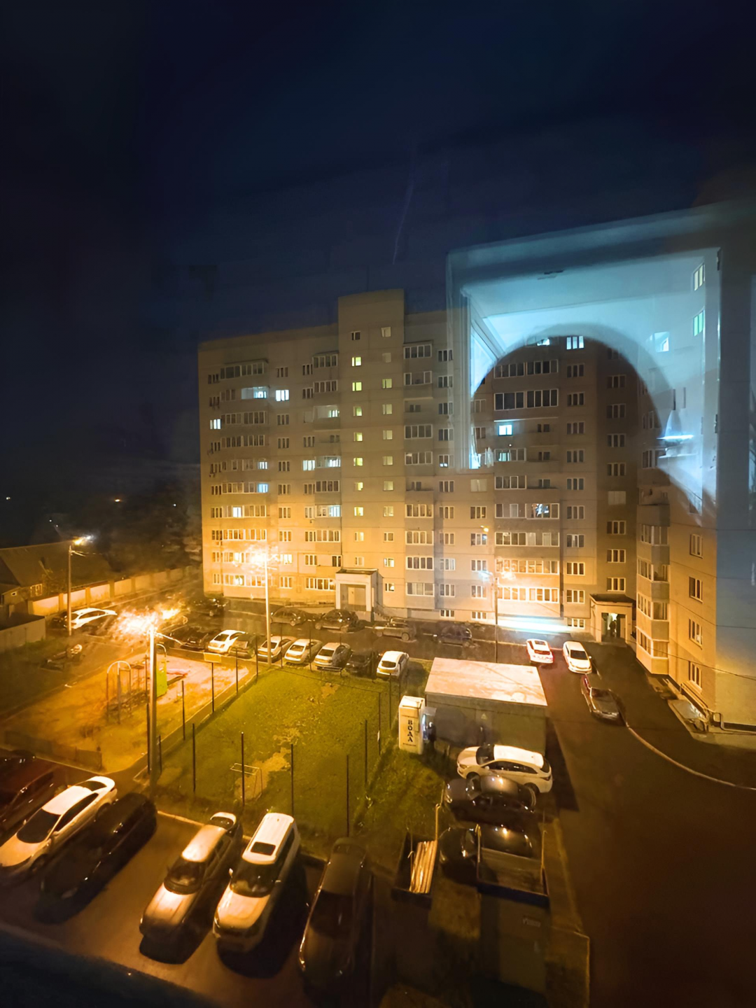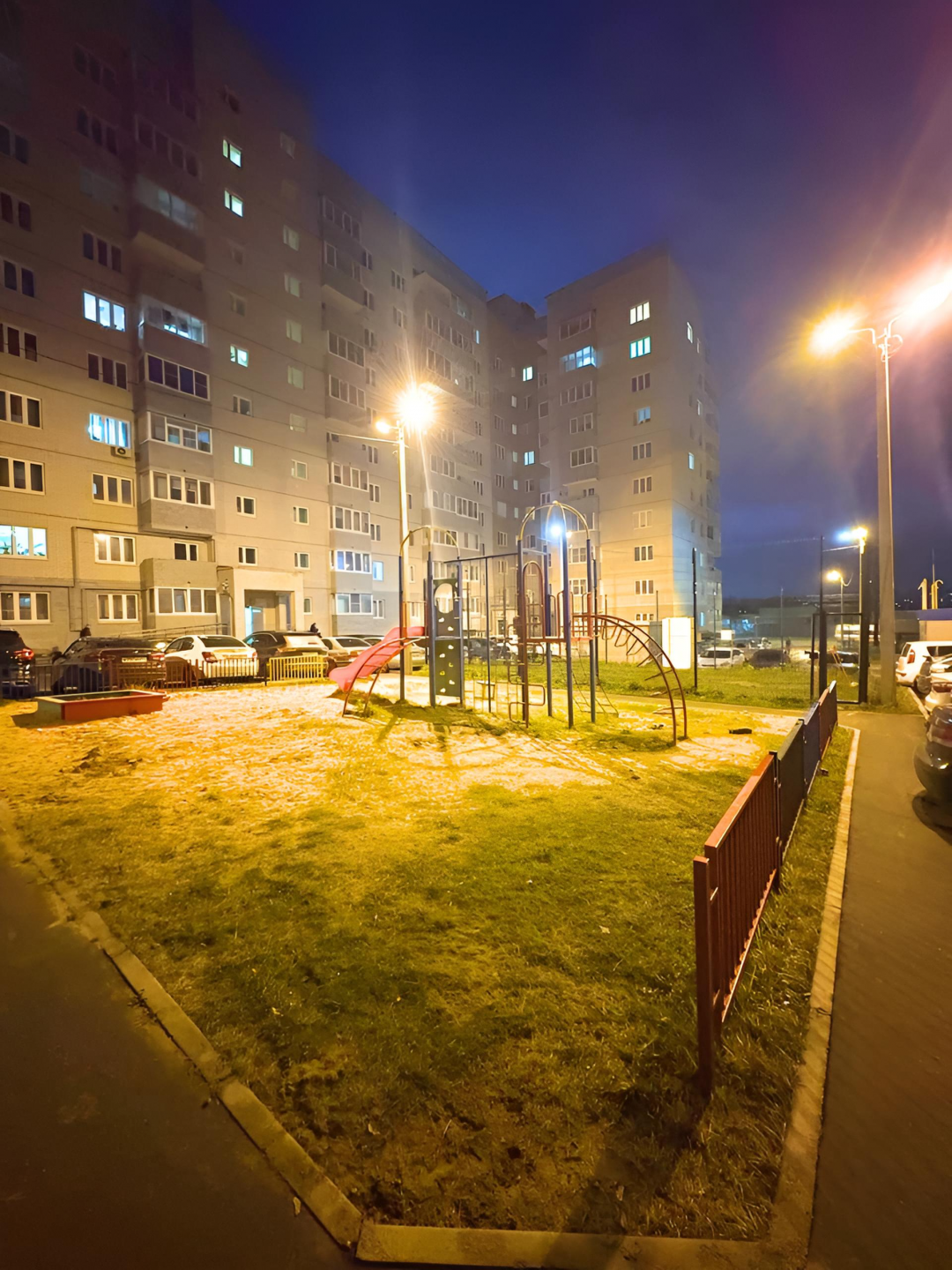 Во дворе расположена детская площадка и парковочные места.