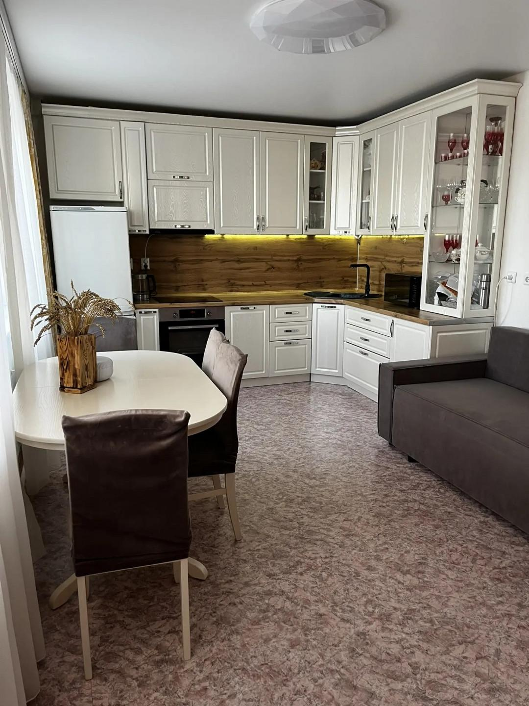 Особенности вашей будущей квартиры:Простор и функциональность: Общая площадь 74.4 м² включает в себя впечатляющую кухню 20 м², где легко можно организовать как уютную кухонную зону, так и полноценную гостиную. Широкая прихожая и квадратный коридор предоставляют массу пространства для игр, танцев и вместительных шкафов.Стильный ремонт: Квартира полностью готова к заселению, выполнен качественный ремонт. Вам останется только расставить свою мебель!Кухня вашей мечты: Кухонный гарнитур уже остаётся для вас! С кухни есть выход на балкон, где можно наслаждаться утренним кофе.Уютные спальни: Две изолированные спальни, одна из которых — настоящая сказка для ребёнка в нежных розовых тонах со "звёздным небом".Комфорт в каждой детали: Раздельный санузел, полностью отделанный кафелем. В ванной комнате есть возможность установить джакузи или дополнительный унитаз. Высокие потолки (2.6 м) добавляют ощущения простора.Окна выходят на солнечную сторону, во двор и на улицу, обеспечивая много естественного света.