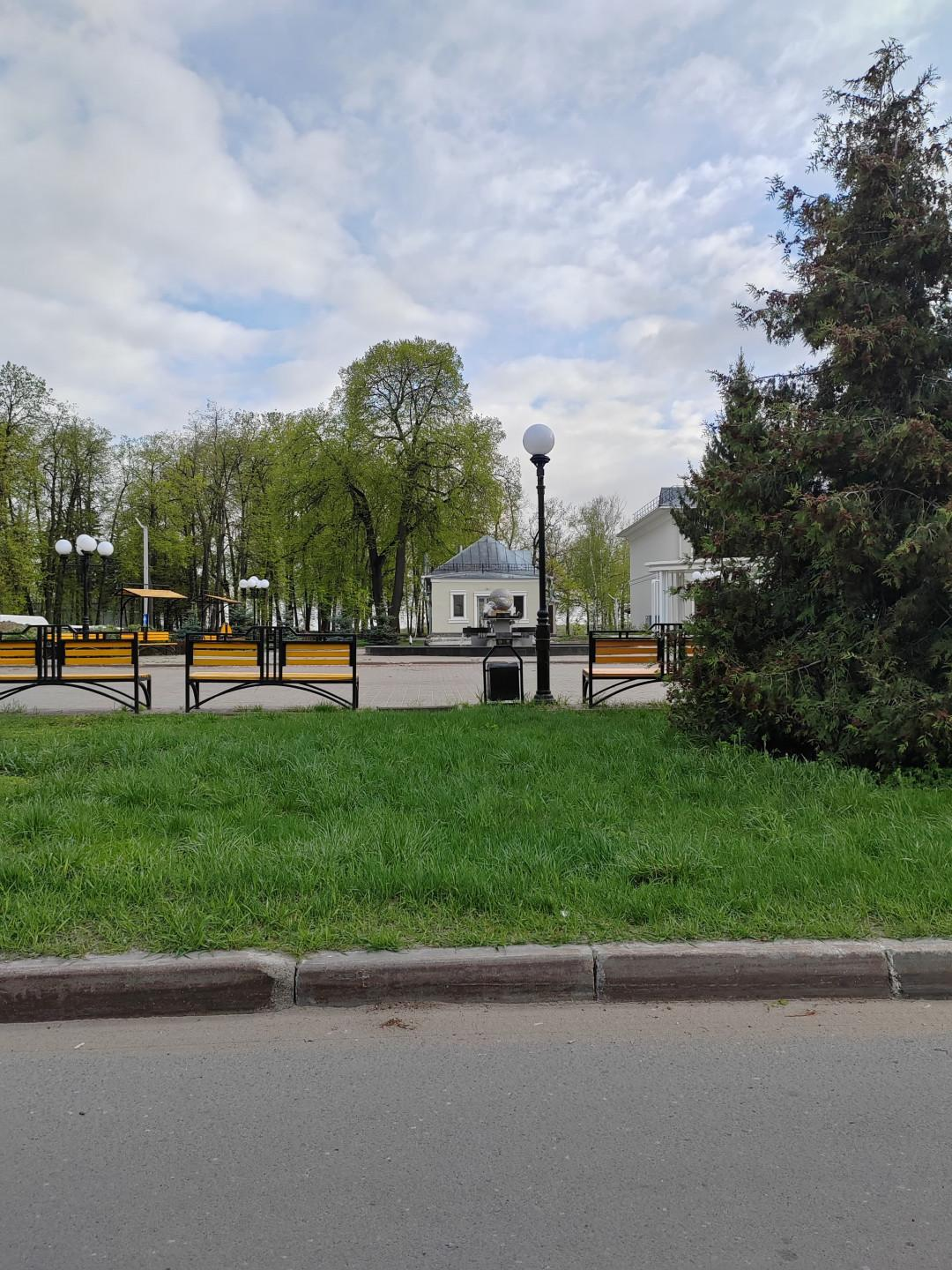 Сквер с современными детскими площадками и живописным фонтаном.