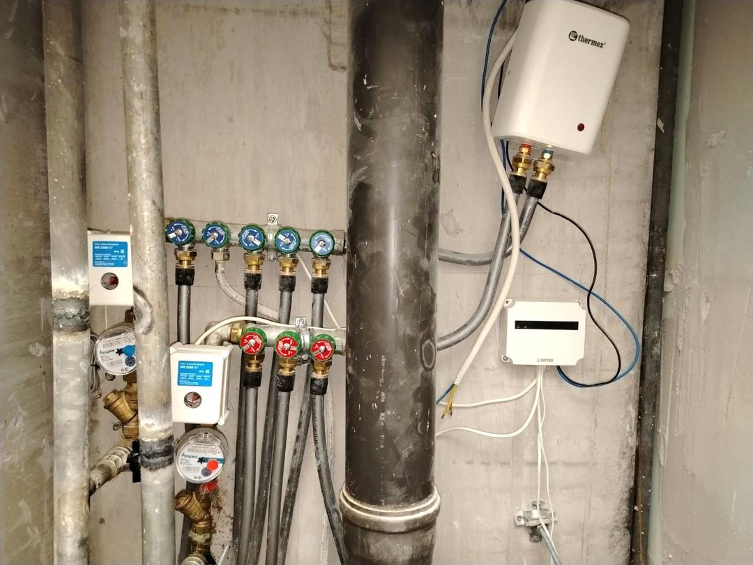 - проведены трубы для постирочной системы - стиральная машина устанавливается в отдельный функциональный отсек , с возможностью установки встроенной мебели