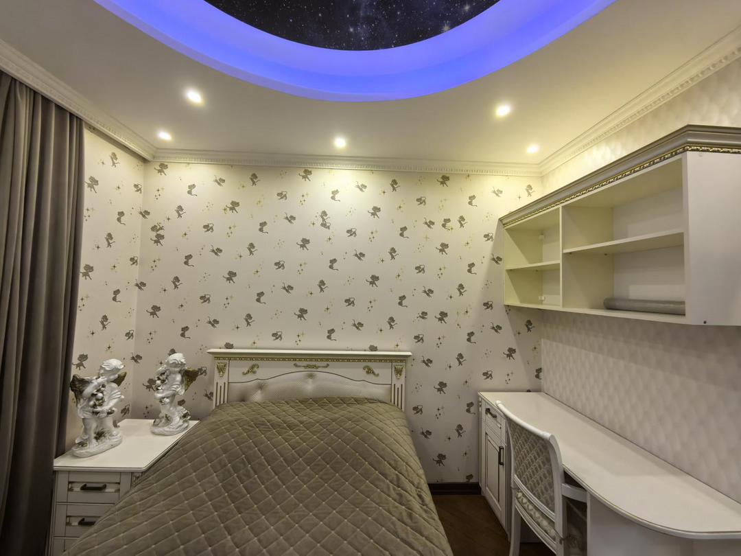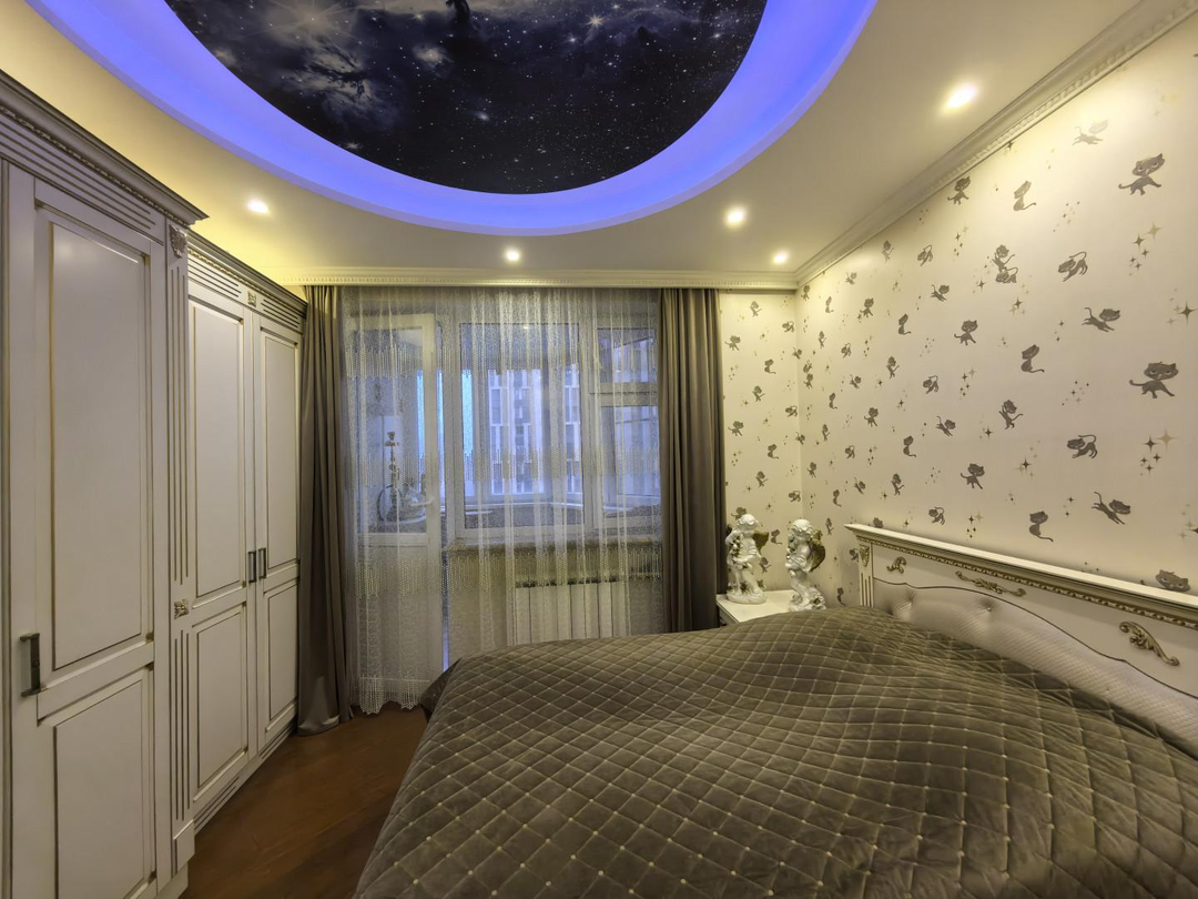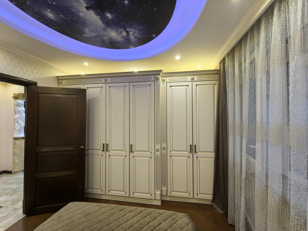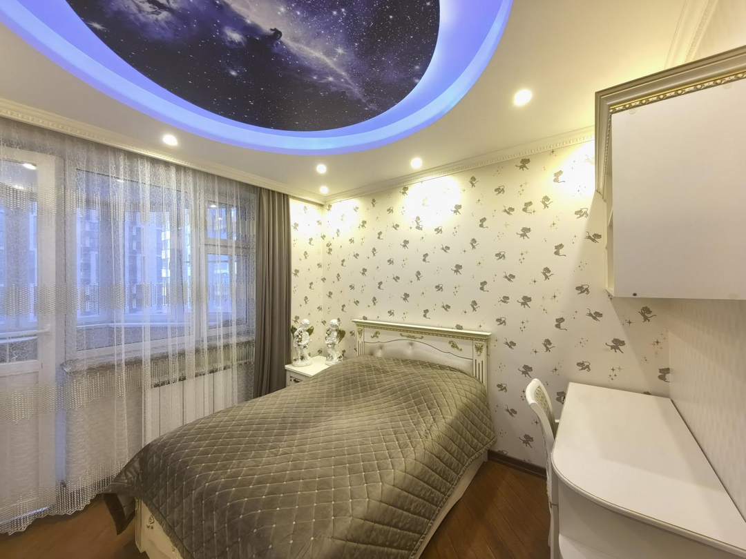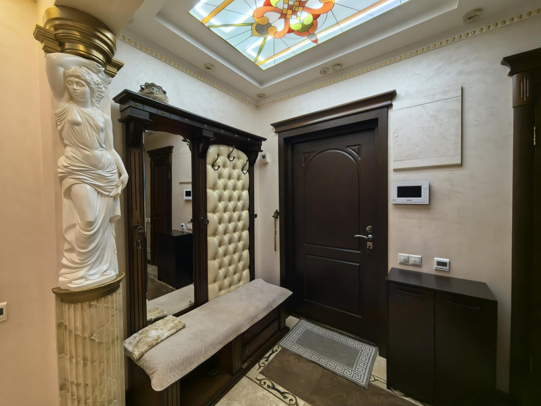 Витражные потолки в холле, в детской комнате потолок "звездное небо",