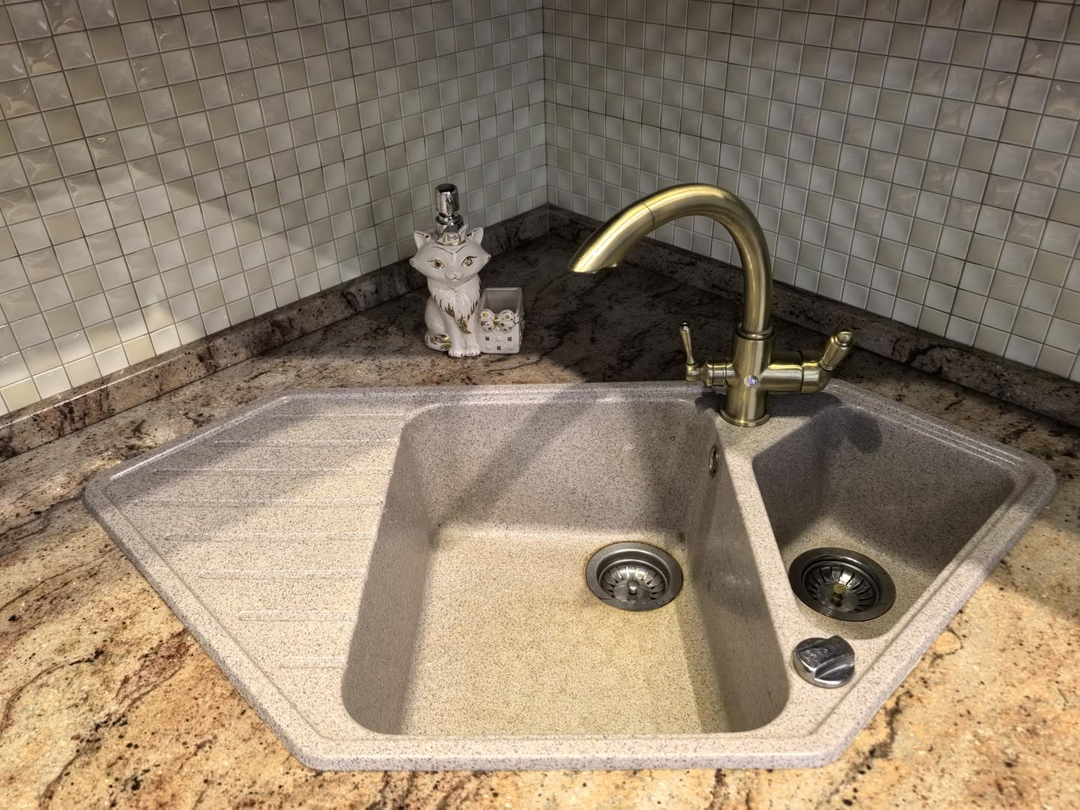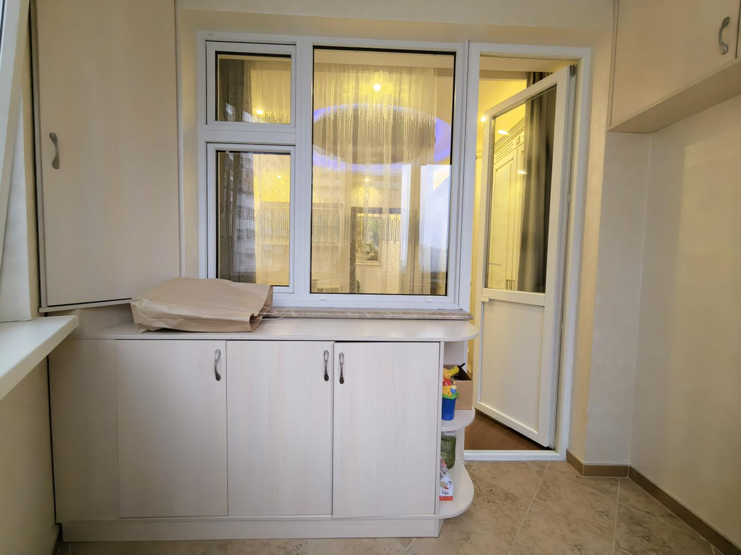 тёплый пол, мраморные подоконники, столешница на кухне и подоконник- гранит,