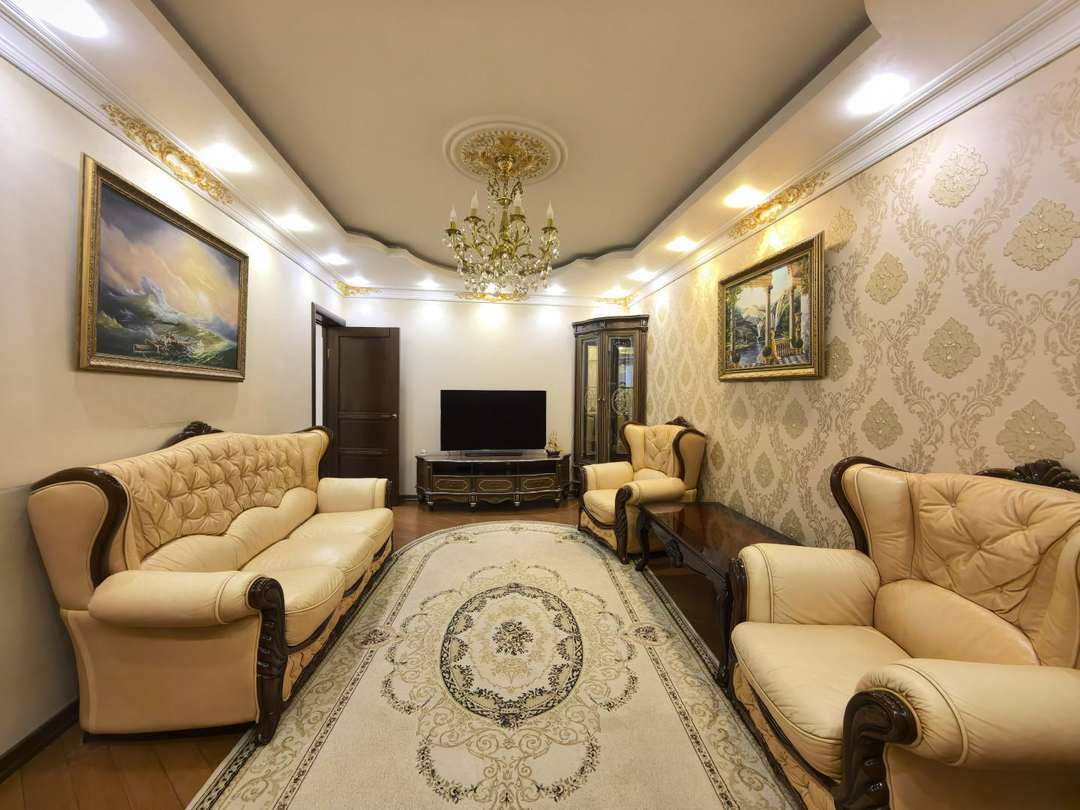 Ремонт выполнен в классическом стиле.
