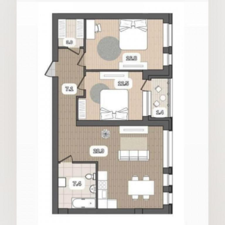 О квартире:Пространство для жизни: Две уютные изолированные спальни обеспечивают приватность, а просторная кухня-гостиная станет сердцем вашего дома, где можно собираться всей семьей и принимать гостей. Квартира находится на 2 этаже из 6-ти.Функциональность и удобство: Гардеробная площадью 3 кв.м. позволит организовать идеальное хранение вещей, а большой санузел 7 кв.м. подарит ощущение СПА-пространства.Свет и воздух: Увеличенные оконные проемы наполняют комнаты естественным светом, создавая атмосферу простора и уюта. Застекленная лоджия станет прекрасным местом для утреннего кофе или вечернего отдыха.
