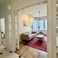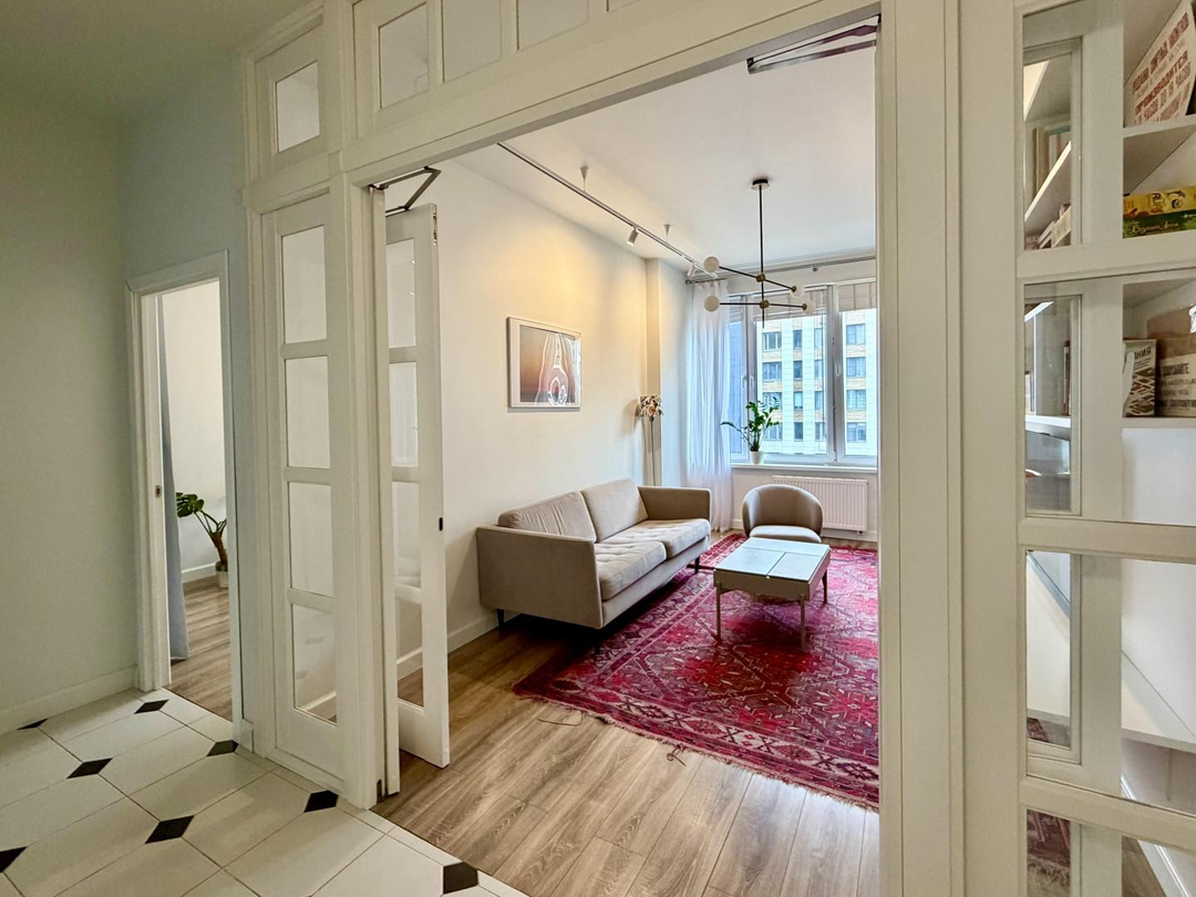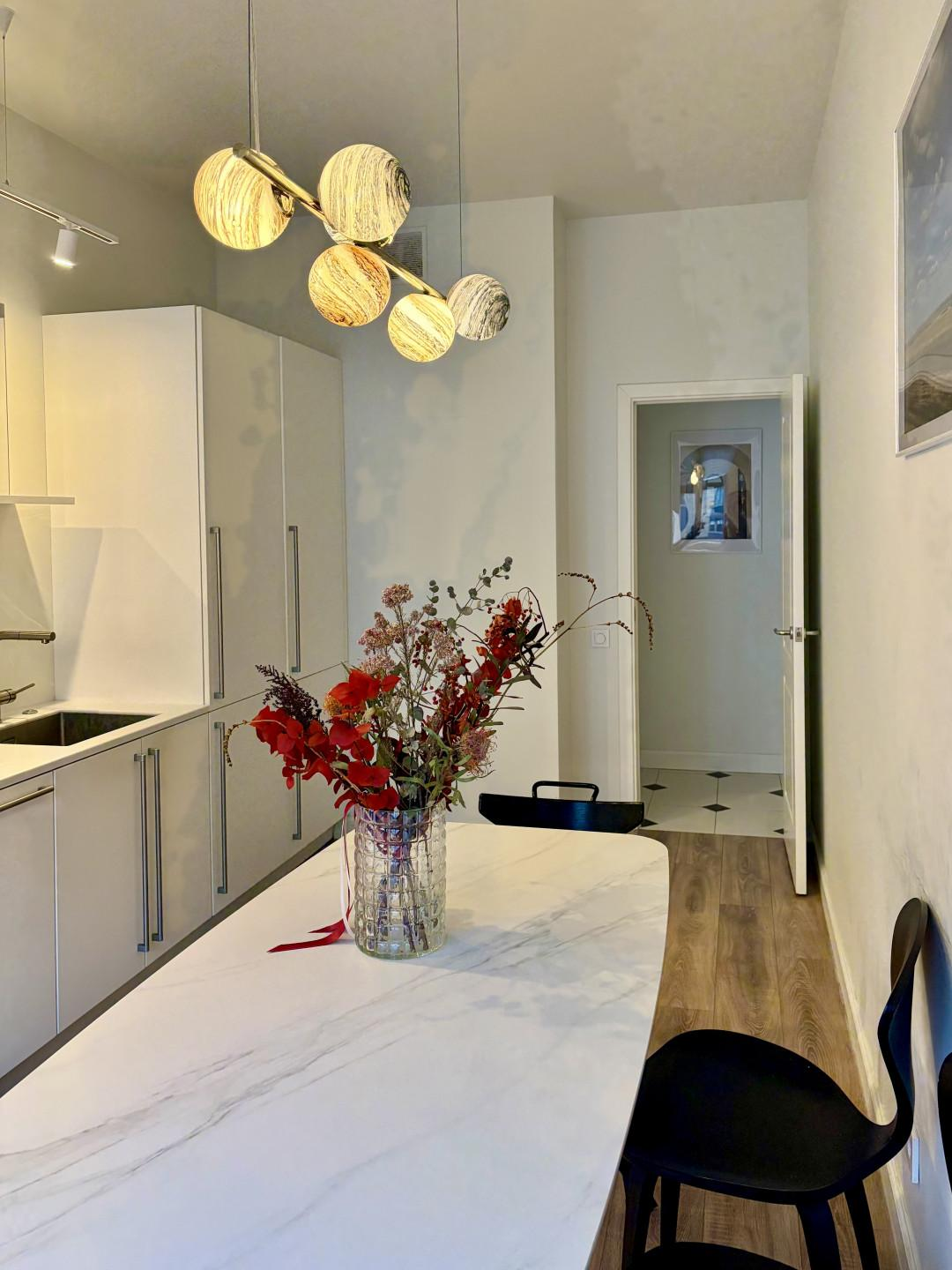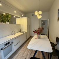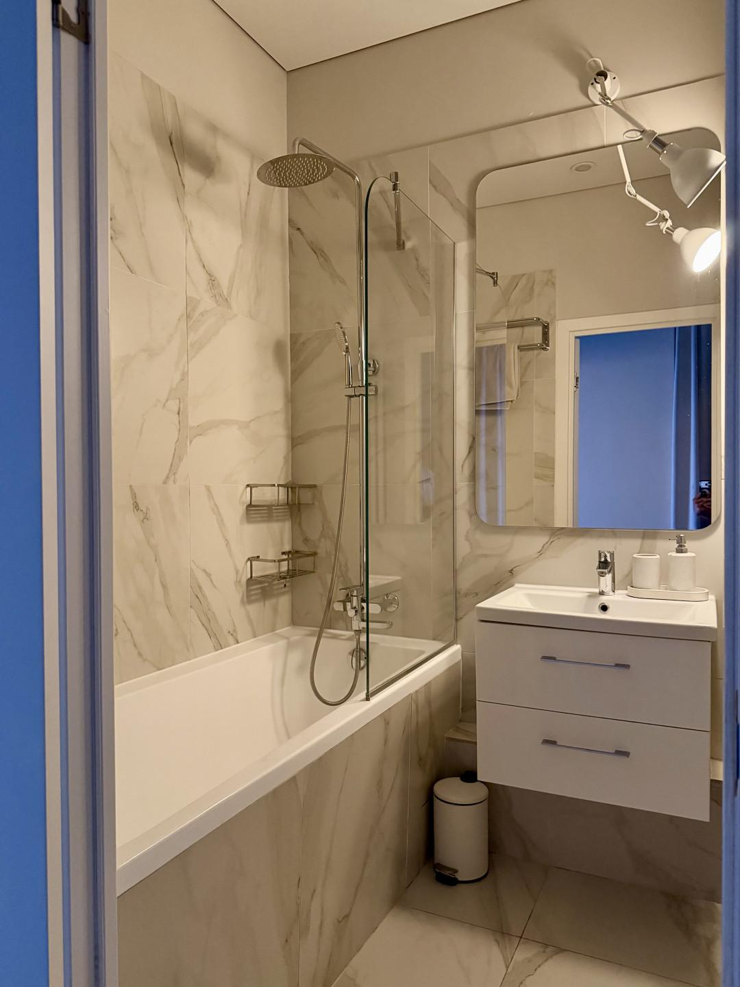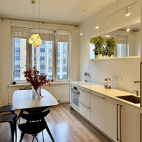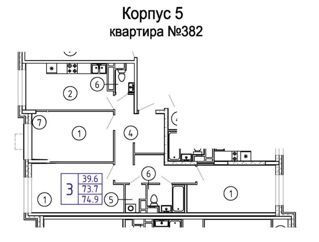 Светлая 3-комнатная квартира в новом доме с большой кухней, постирочной и двумя санузлами.